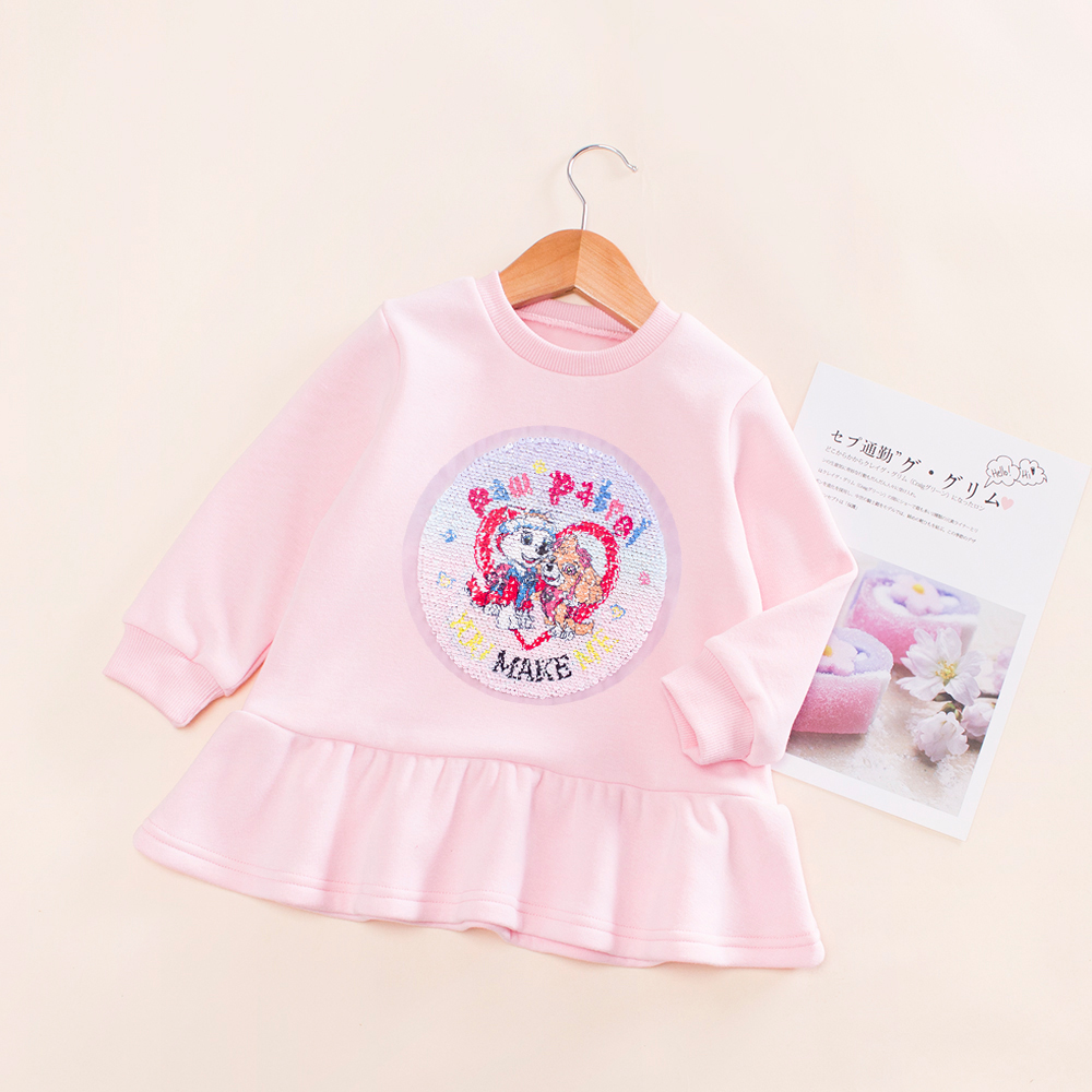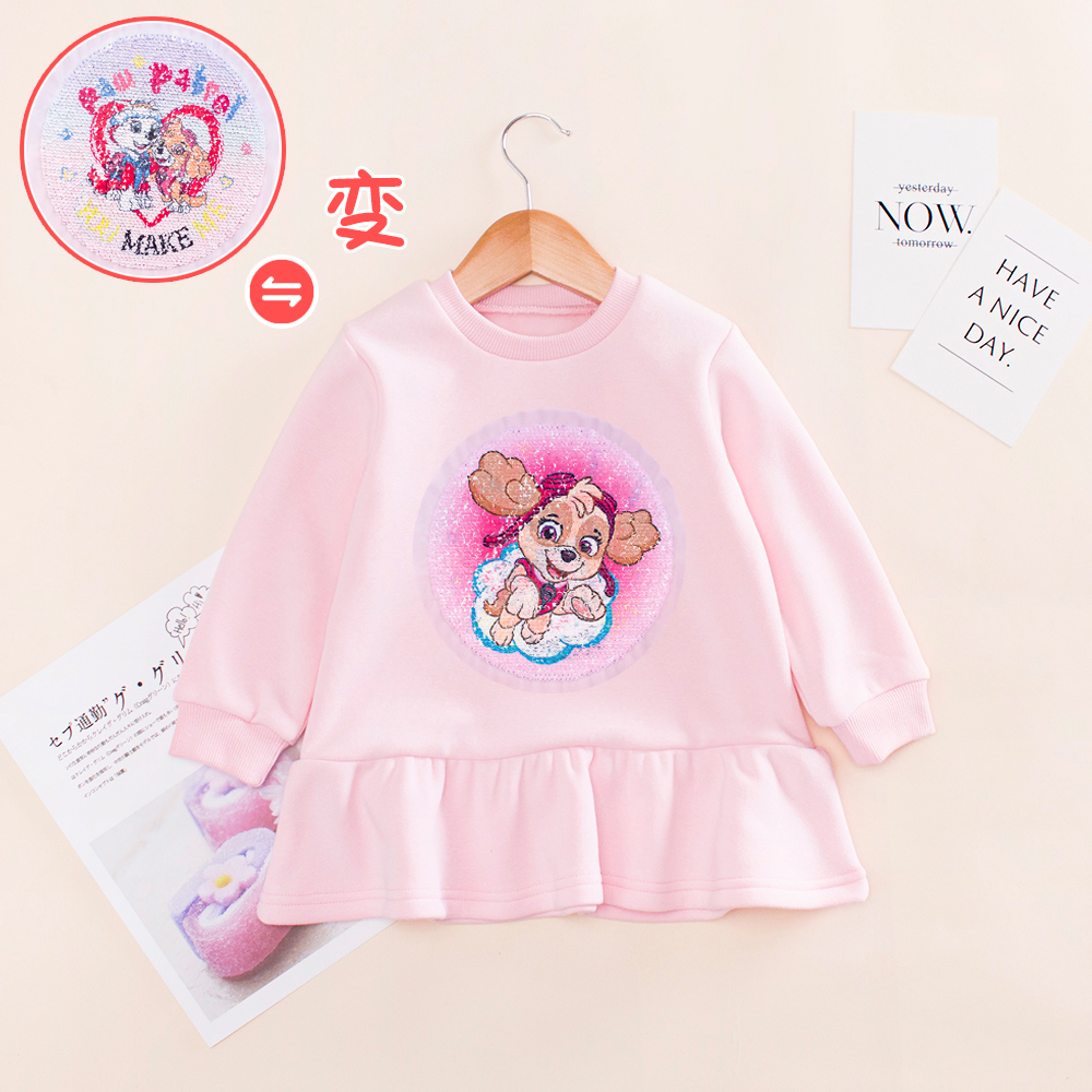 女童秋冬连衣裙儿童亮片可变图案衣服可爱宝宝加绒短裙汪汪队裙子