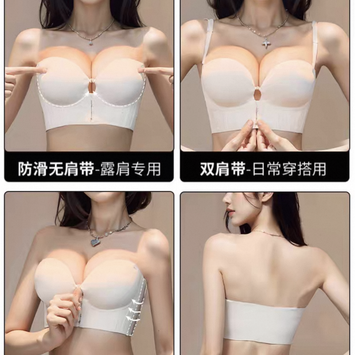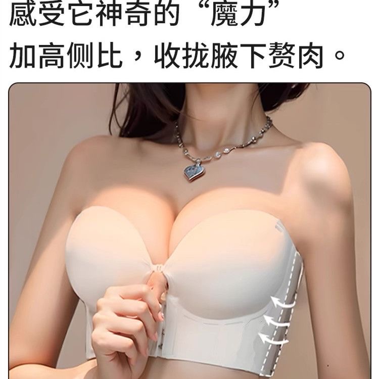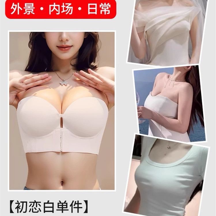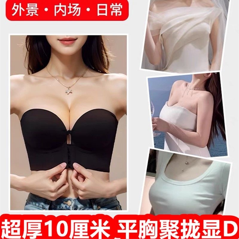 前扣内衣女超厚10CM小胸聚拢显大无肩带防滑提拉上托美背厚文胸罩