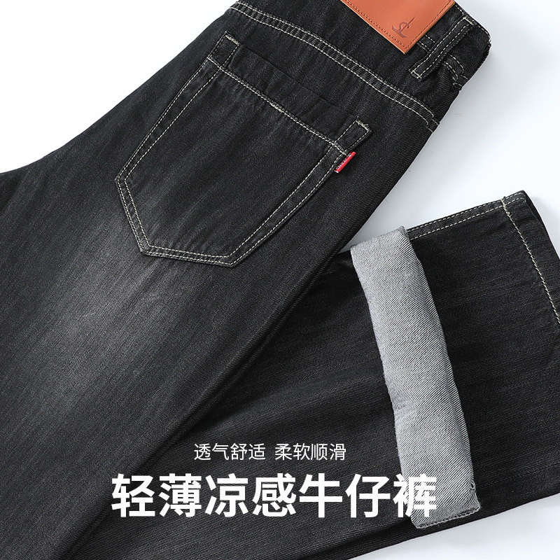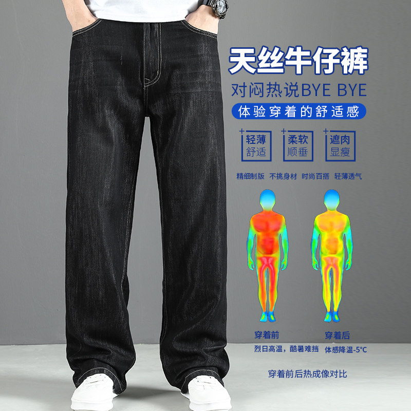 夏天超薄莱赛尔天丝牛仔裤男宽松直筒中年商务夏季薄款冰丝休闲裤