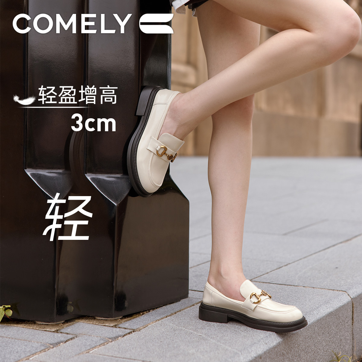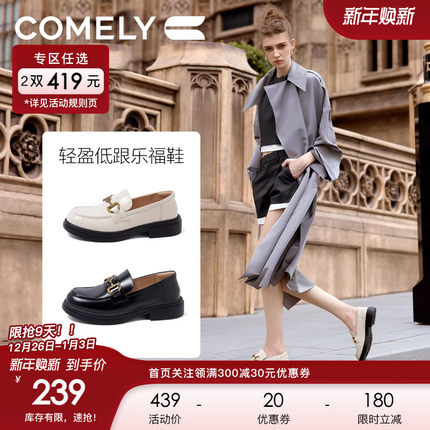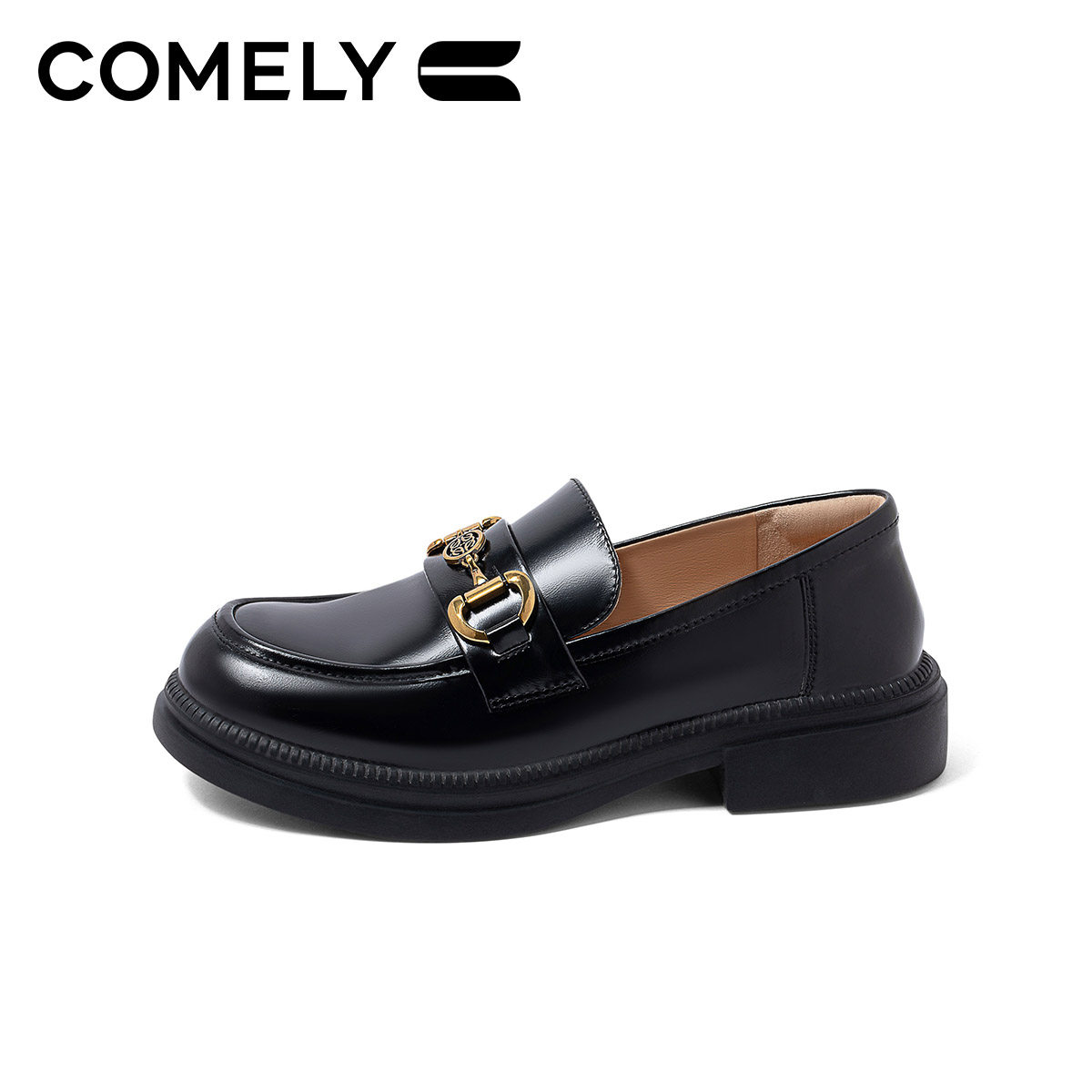 康莉厚底乐福鞋女2024秋季新款复古英伦时尚金属扣圆头百搭小皮鞋