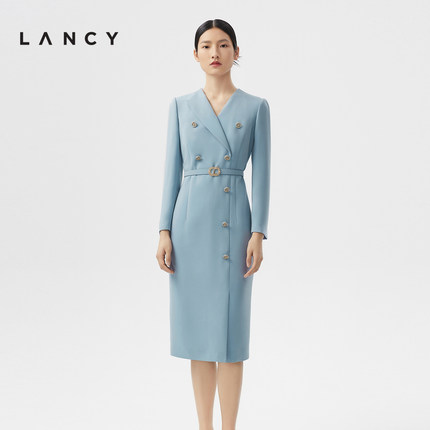 LANCY/朗姿24春秋法式收腰通勤醋酸高级西装连衣裙