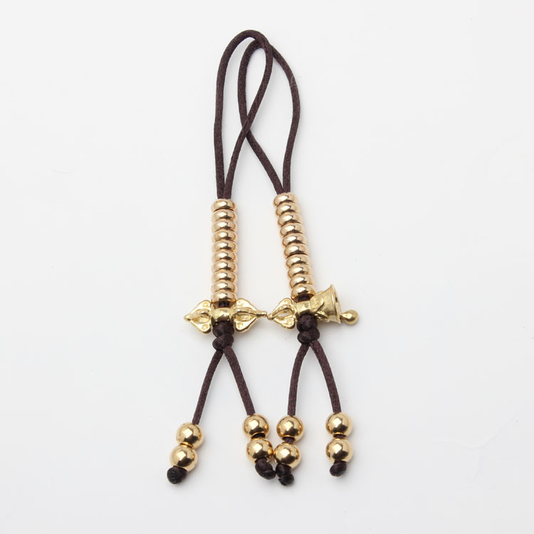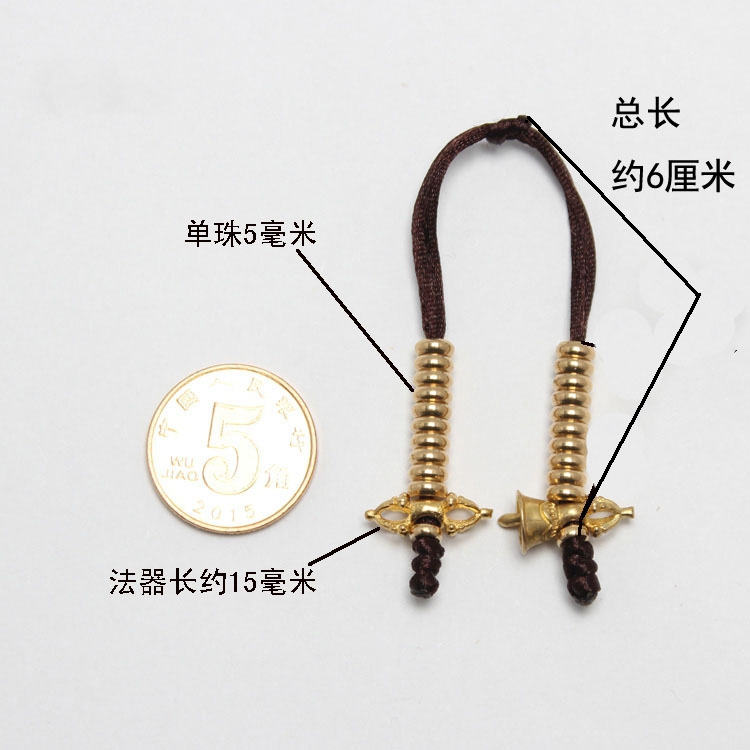 纯黄铜佛珠配饰 金刚铃降魔杵 星月菩提文玩108颗手串挂件吊坠