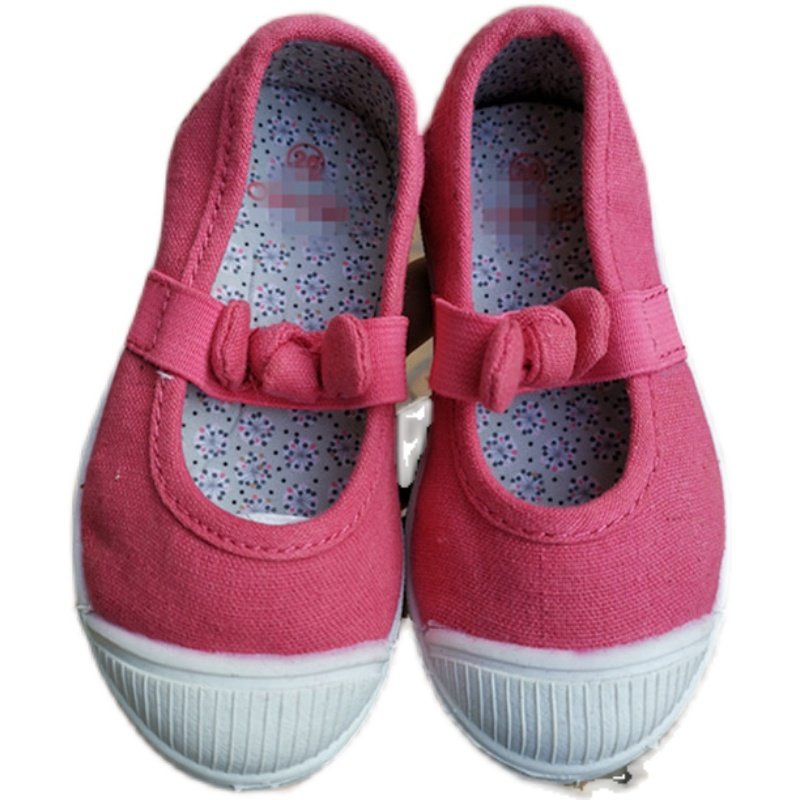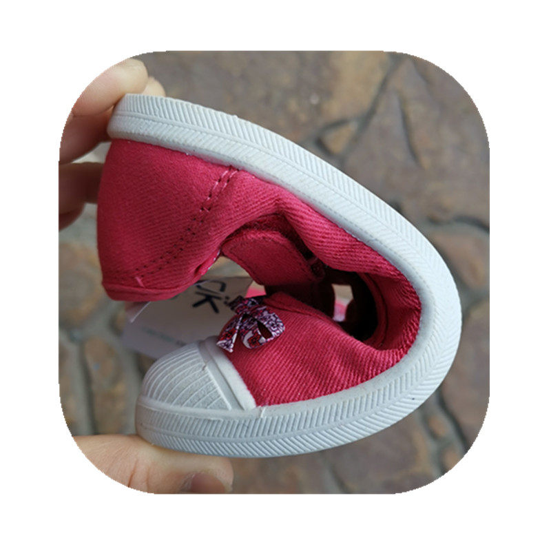 法单棉布料童鞋帆布鞋儿童学步鞋防滑运动休闲平底鞋粉色偏小一码