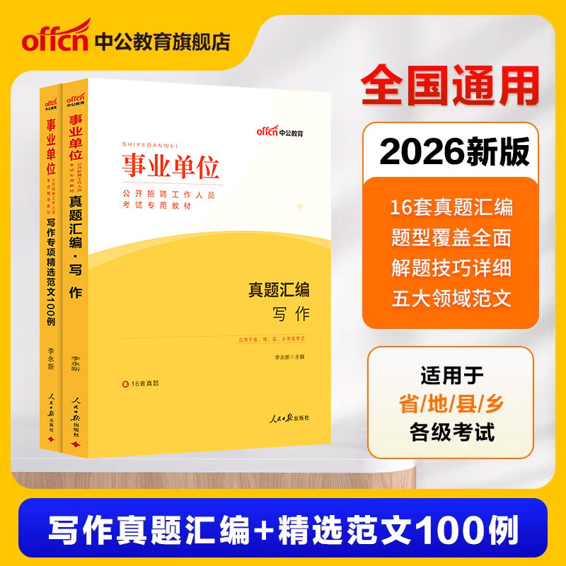 中公教育2025事业单位编制考试写作专项突破精选范文100例历年真题公文写作申论综合知识刷题资料江苏山东江西天津湖南贵州省教材