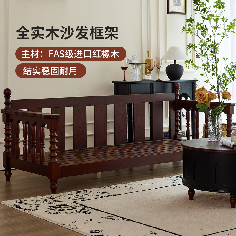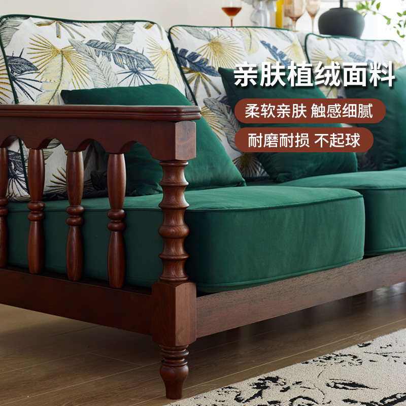 美式法式实木布艺沙发123组合三人小户型小美风格客厅全实木家具