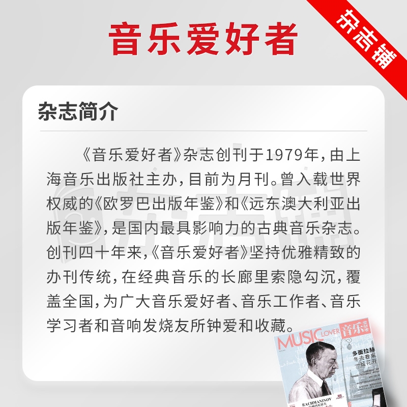 音乐爱好者杂志 2026年1月起订杂志铺 1年共12期 古典音乐舞台音乐专业者爱好者国内外乐坛新资讯期刊杂志订阅