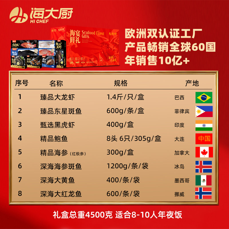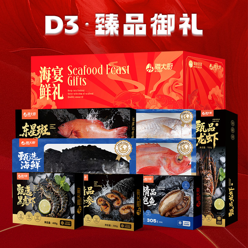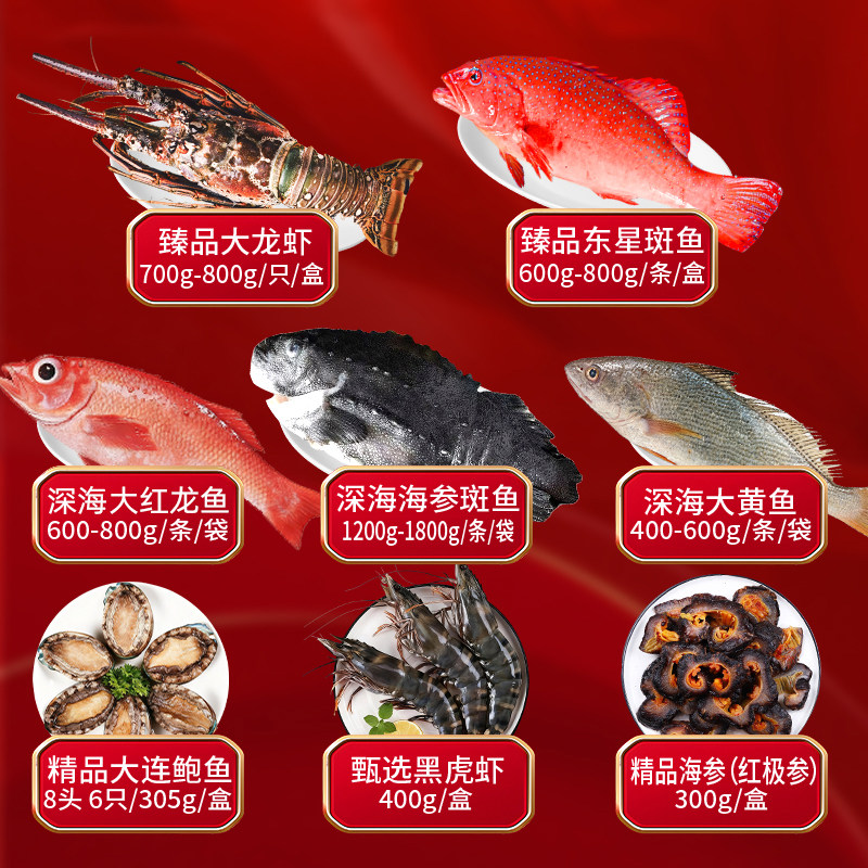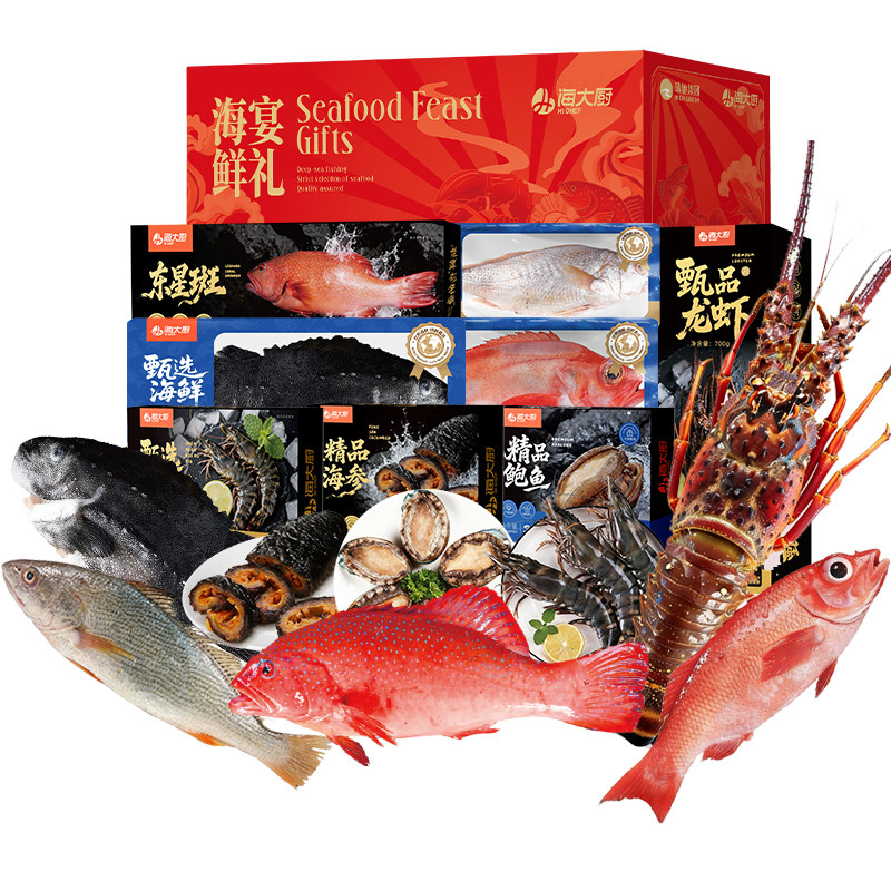 【海大厨】海鲜礼盒大礼包年货送礼年夜饭含龙虾东星斑鱼等8款9斤