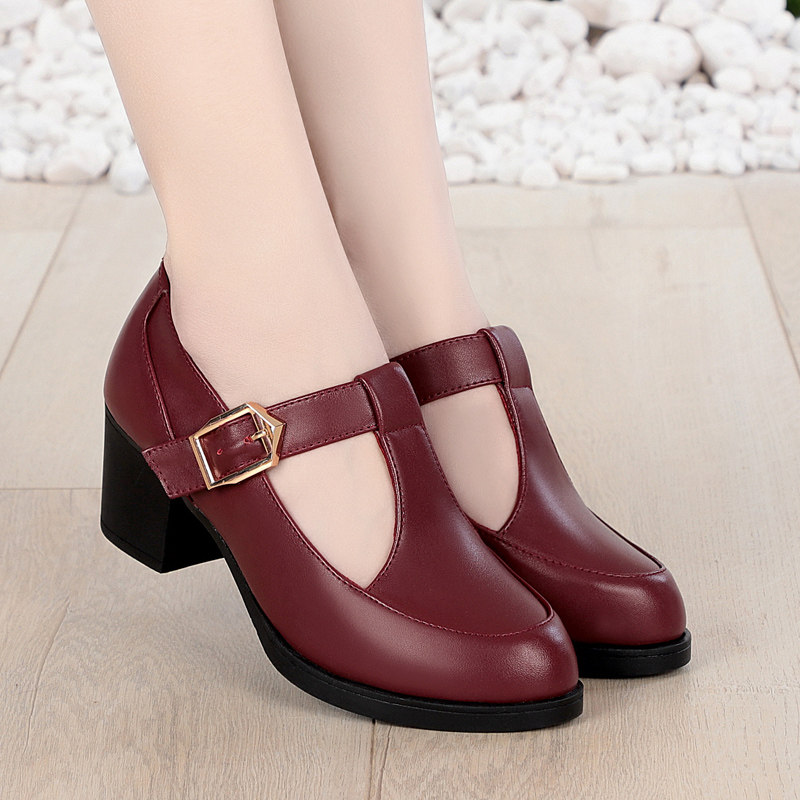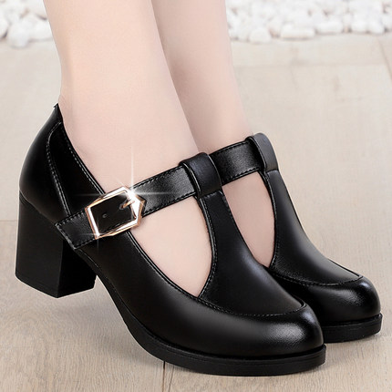 2020春秋新款女鞋真皮粗跟丁字扣单鞋小皮鞋防水台中跟时尚跳舞鞋