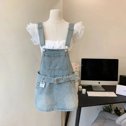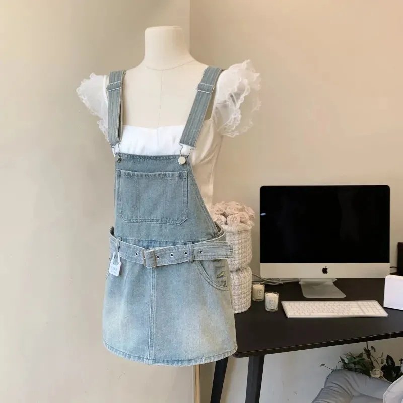 港风甜酷牛仔背带连衣裙女2024夏季新款韩版辣妹时尚百搭少女短裙