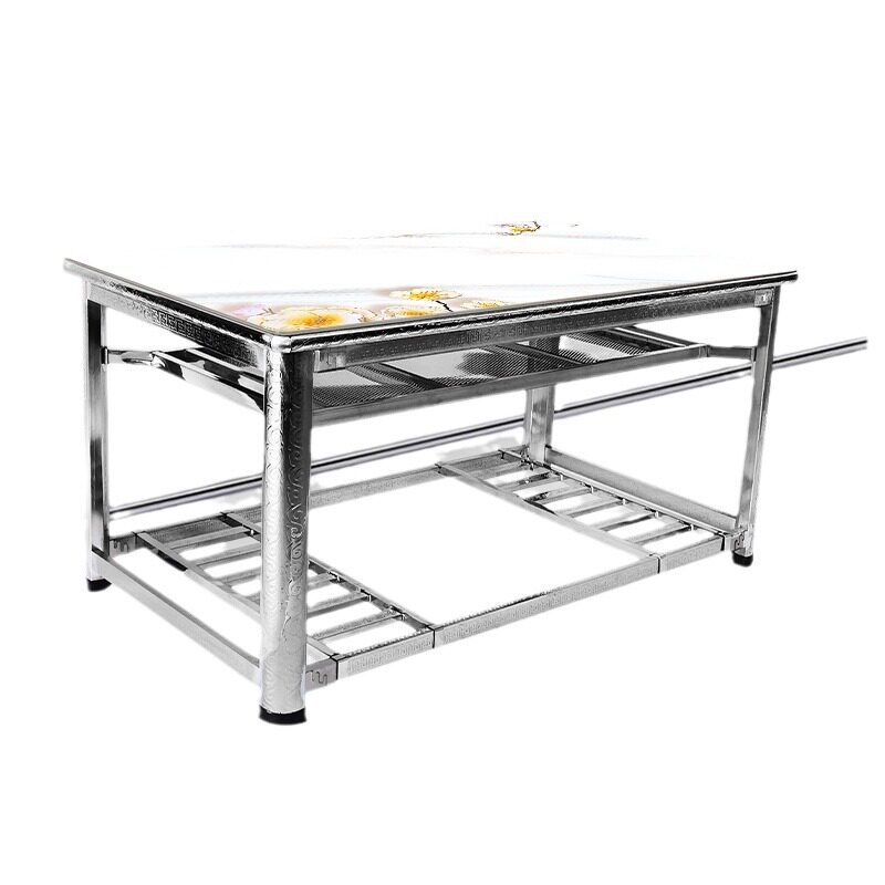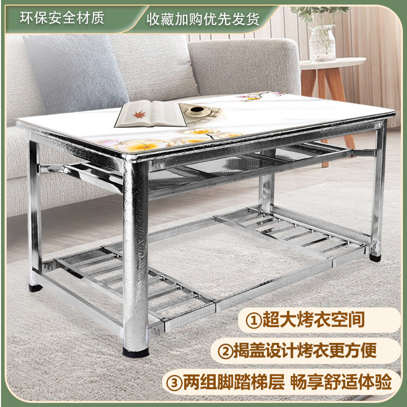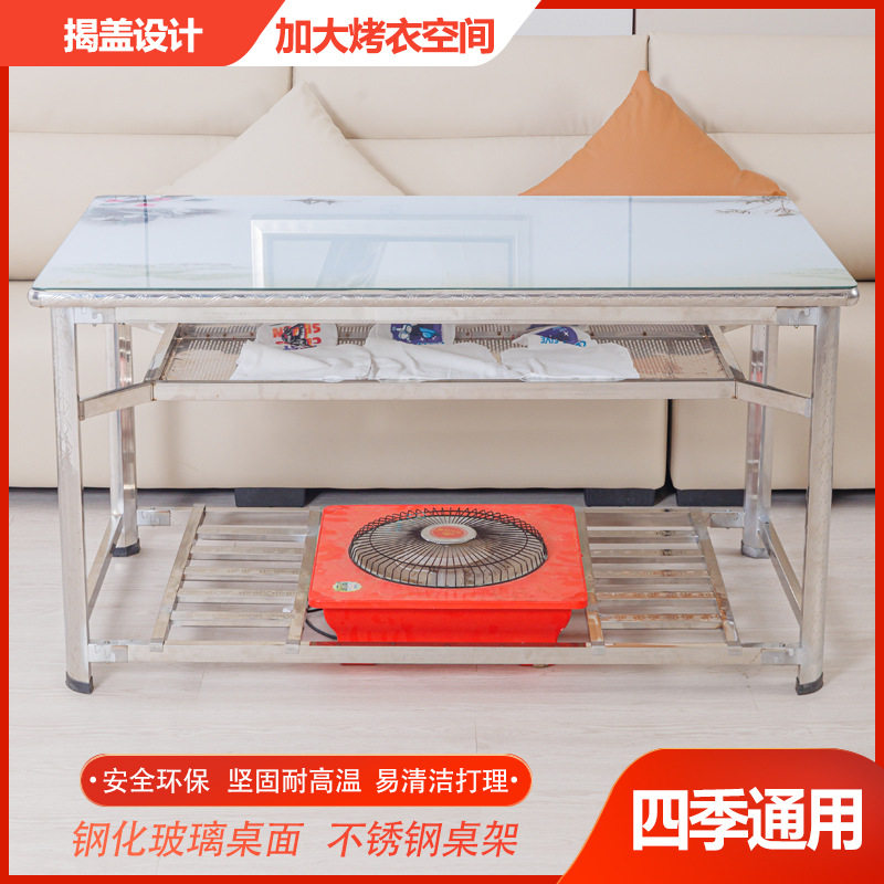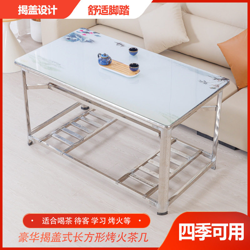 豪华不锈钢茶几桌家用长方形钢化玻璃餐桌取暖学习写字烤火桌架子