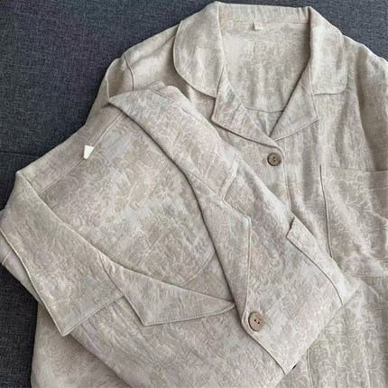 复古文艺棉麻提花情侣款睡衣