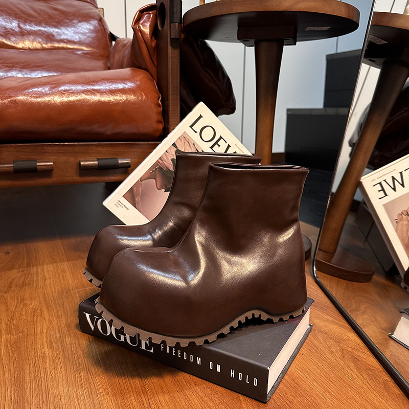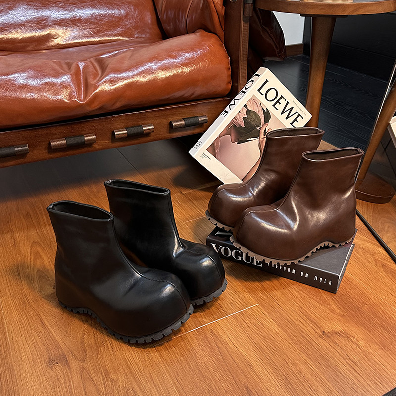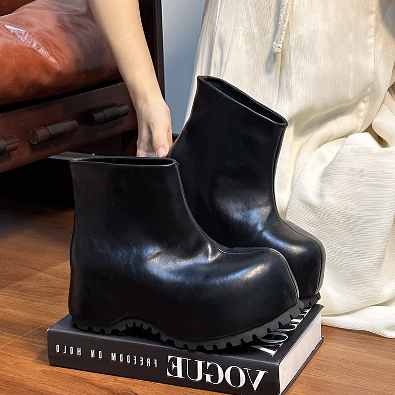 欧货真皮厚底马丁靴女英伦风大头靴小个子增高短靴潮酷辣妹机车靴