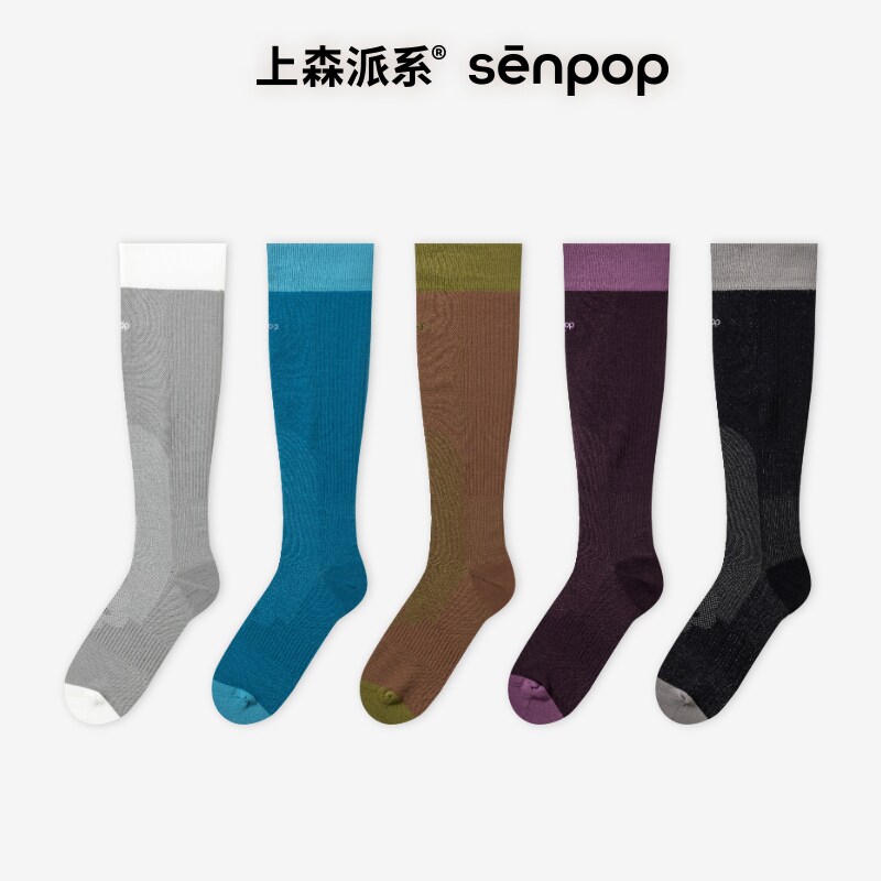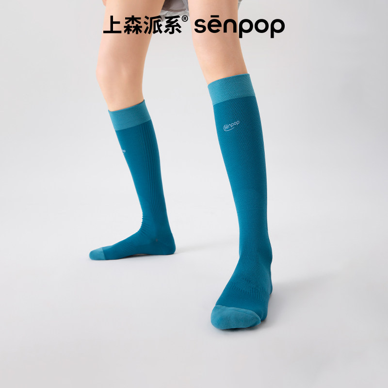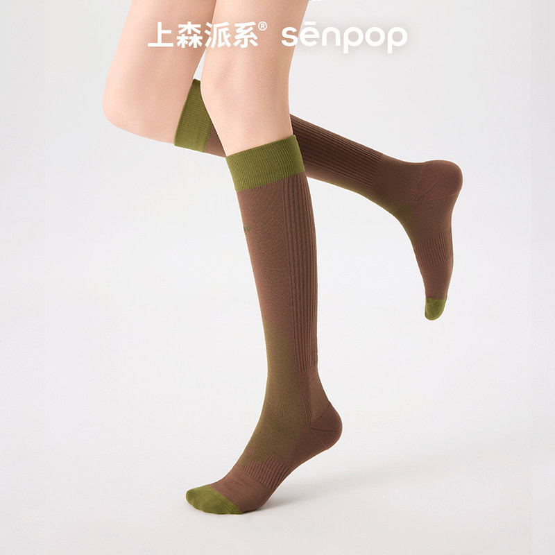 上森运动压力袜健身骑行小腿袜登山网球弹力袜徒步紫色长筒袜夏女