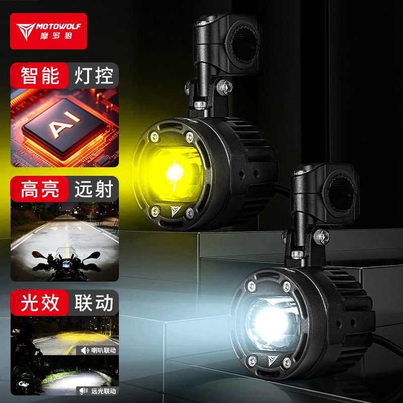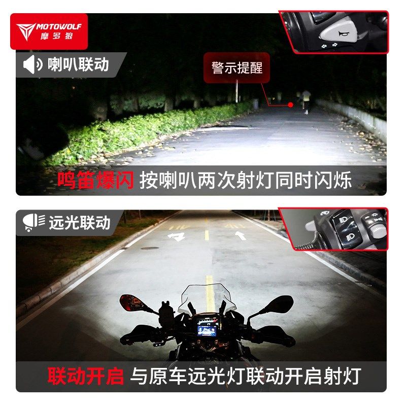 外置摩托车大灯12V超亮前大灯泡LED强光射灯改装远近光辅助爆闪灯