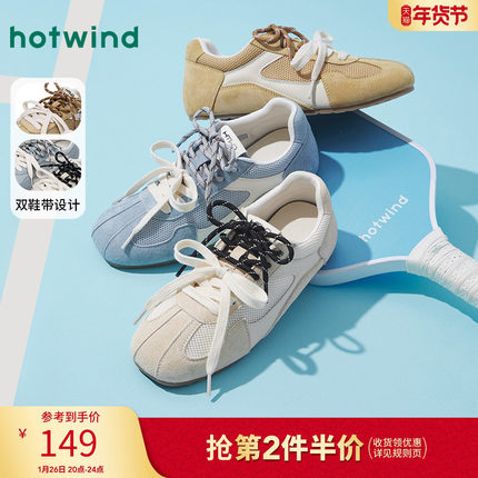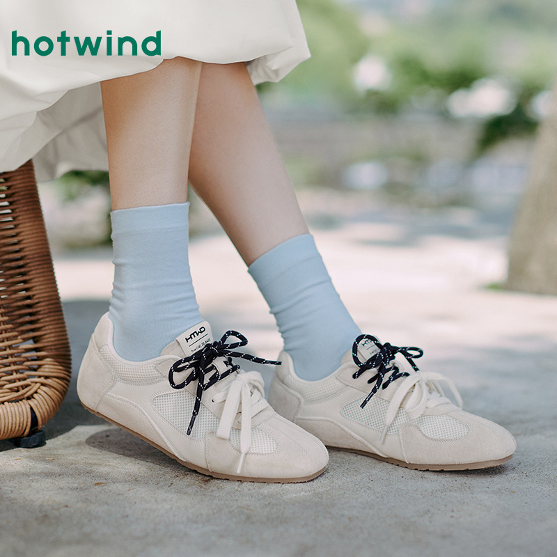 热风网面德训鞋女款2025年秋季新款薄底运动休闲鞋透气芭蕾女鞋子