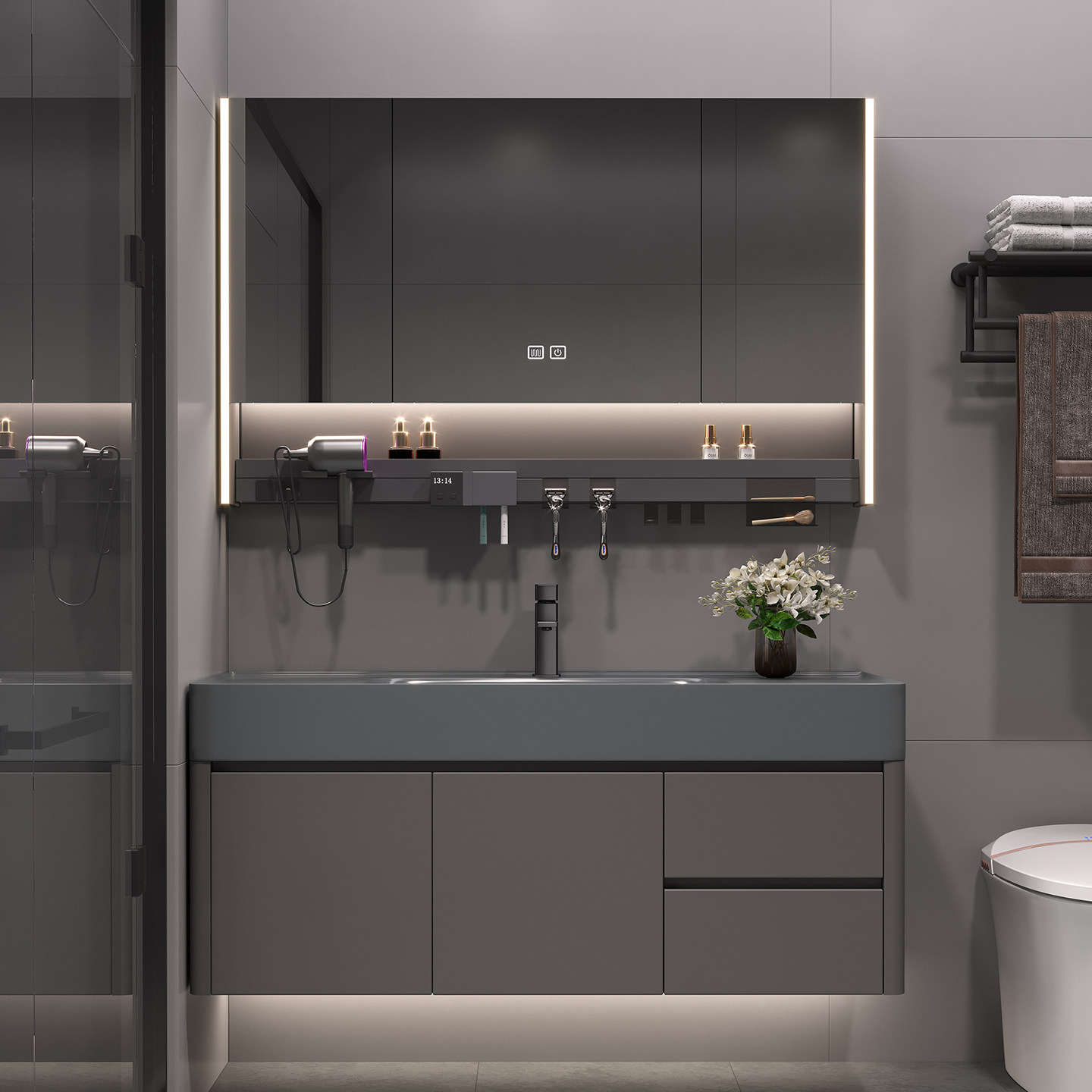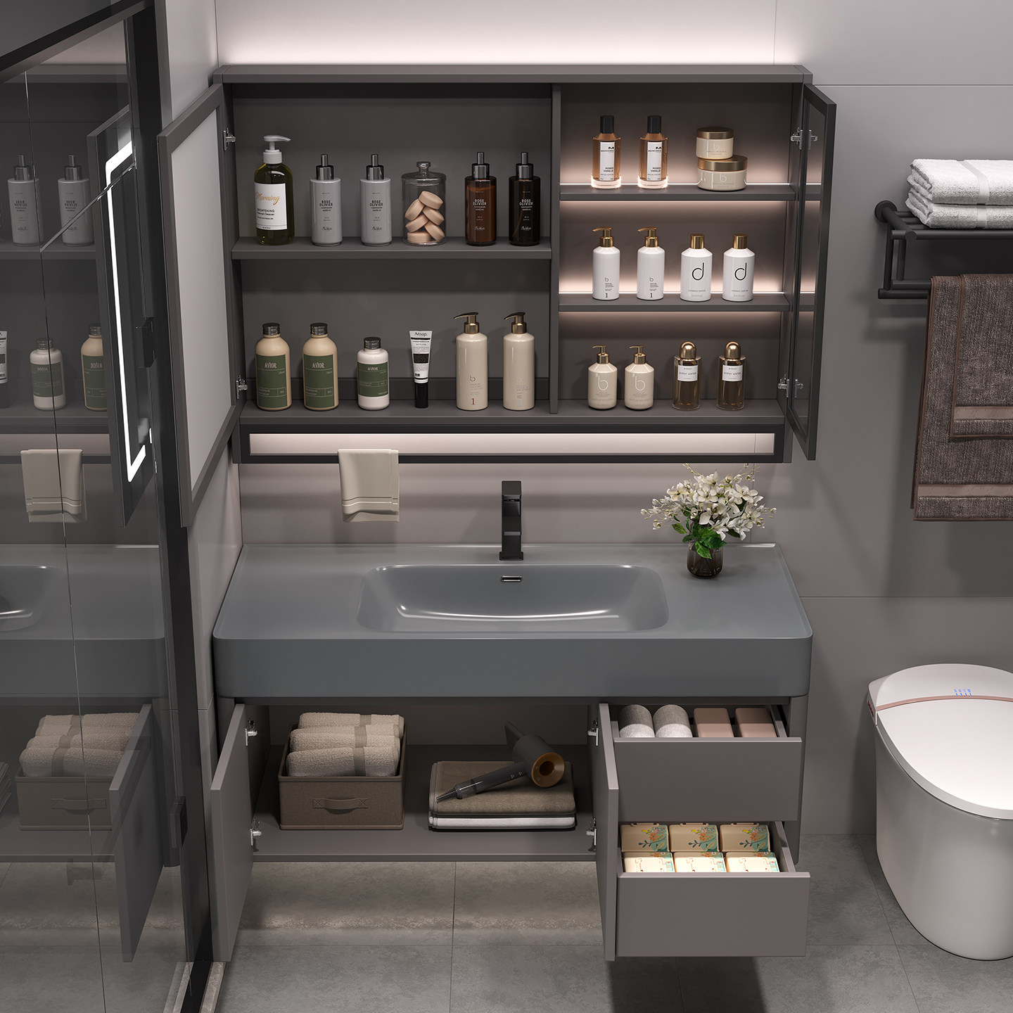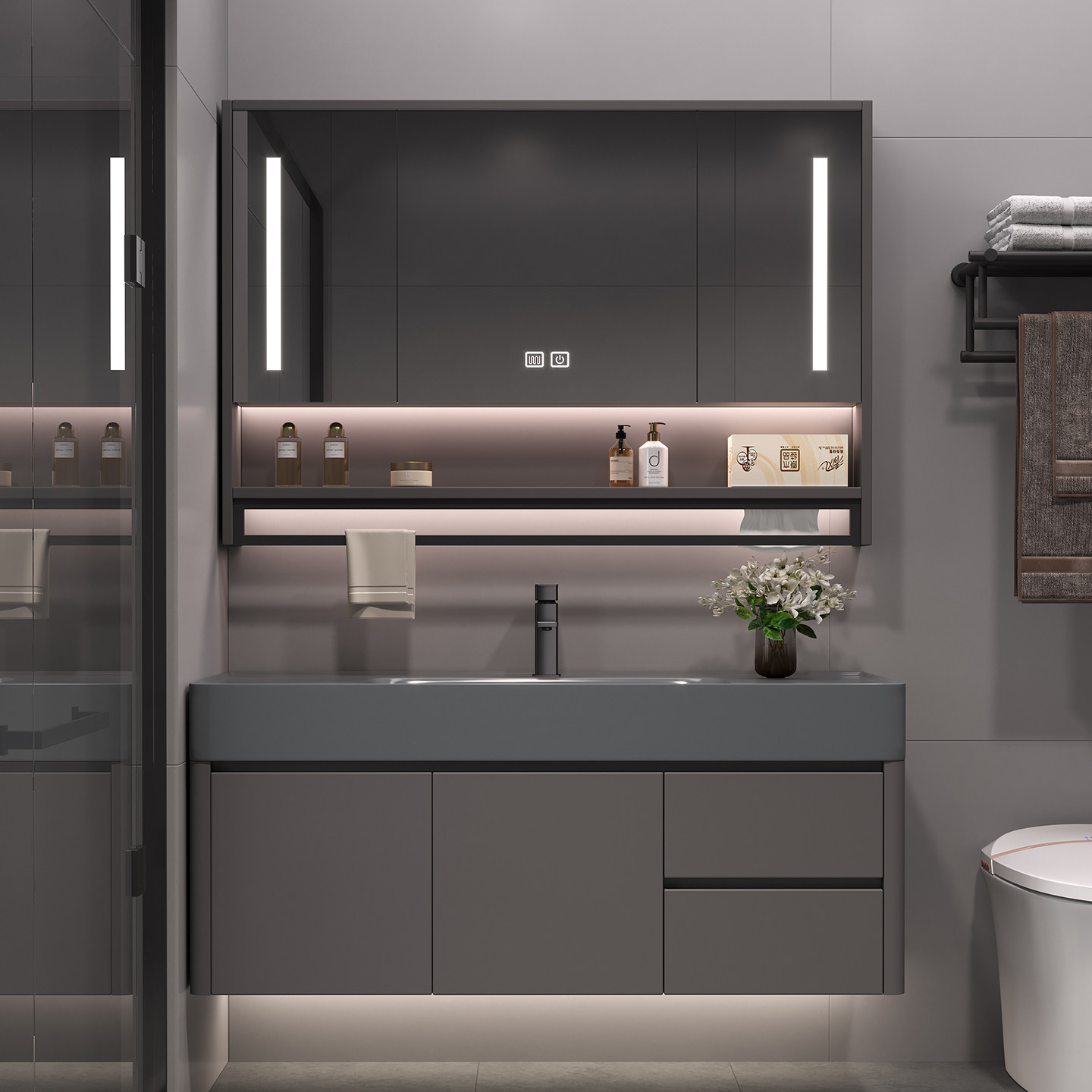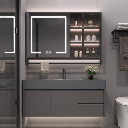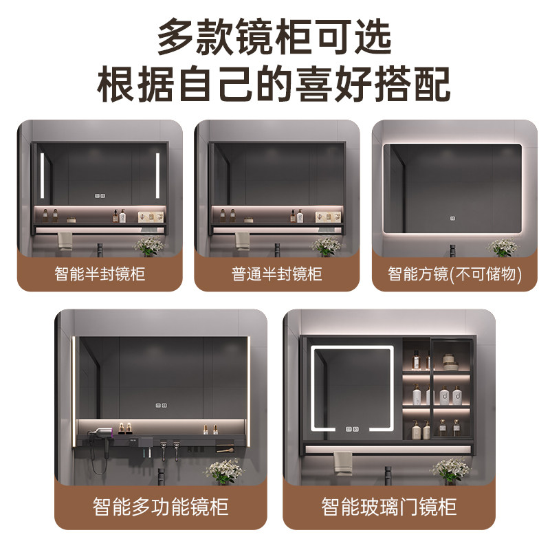 现代简约浴室柜组合纳米岩石一体盆智能镜柜轻奢洗漱台洗手盆