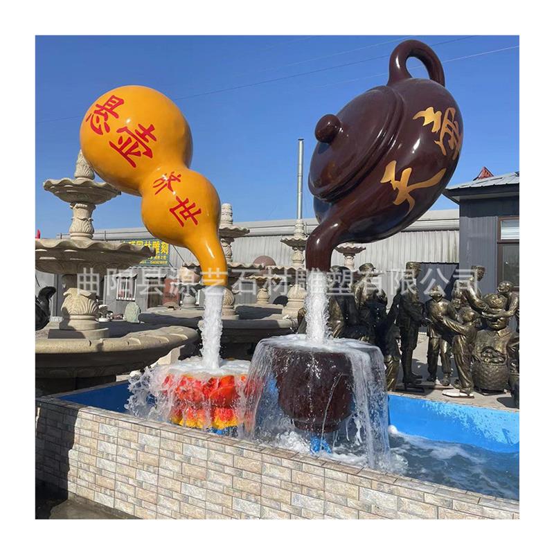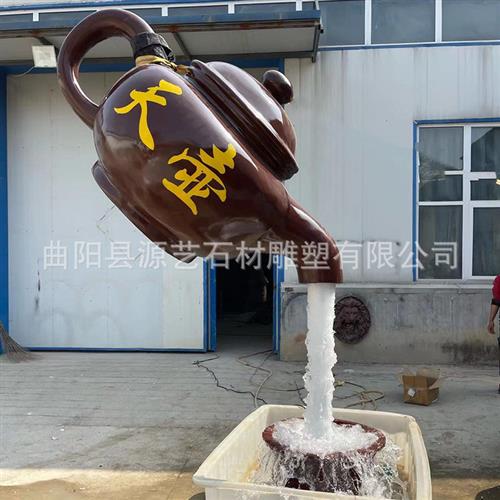户外玻璃钢天壶雕塑悬空大型流水茶壶茶楼园林广场落地景观摆件