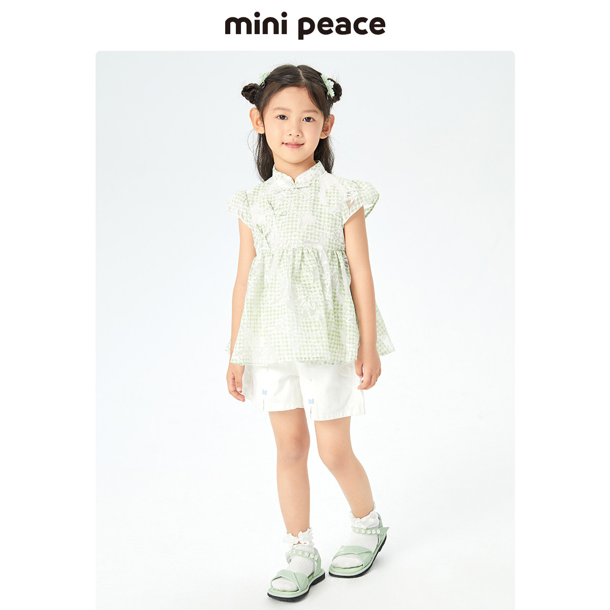 MINIPEACE太平鸟童装女童国风衬衫女宝薄上衣新款夏装洋气