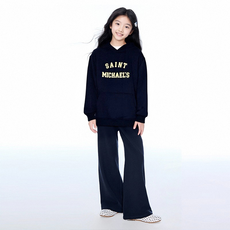 MSYJ 连帽卫衣女童秋冬加绒新款休闲字母印花宽松加厚套头上衣