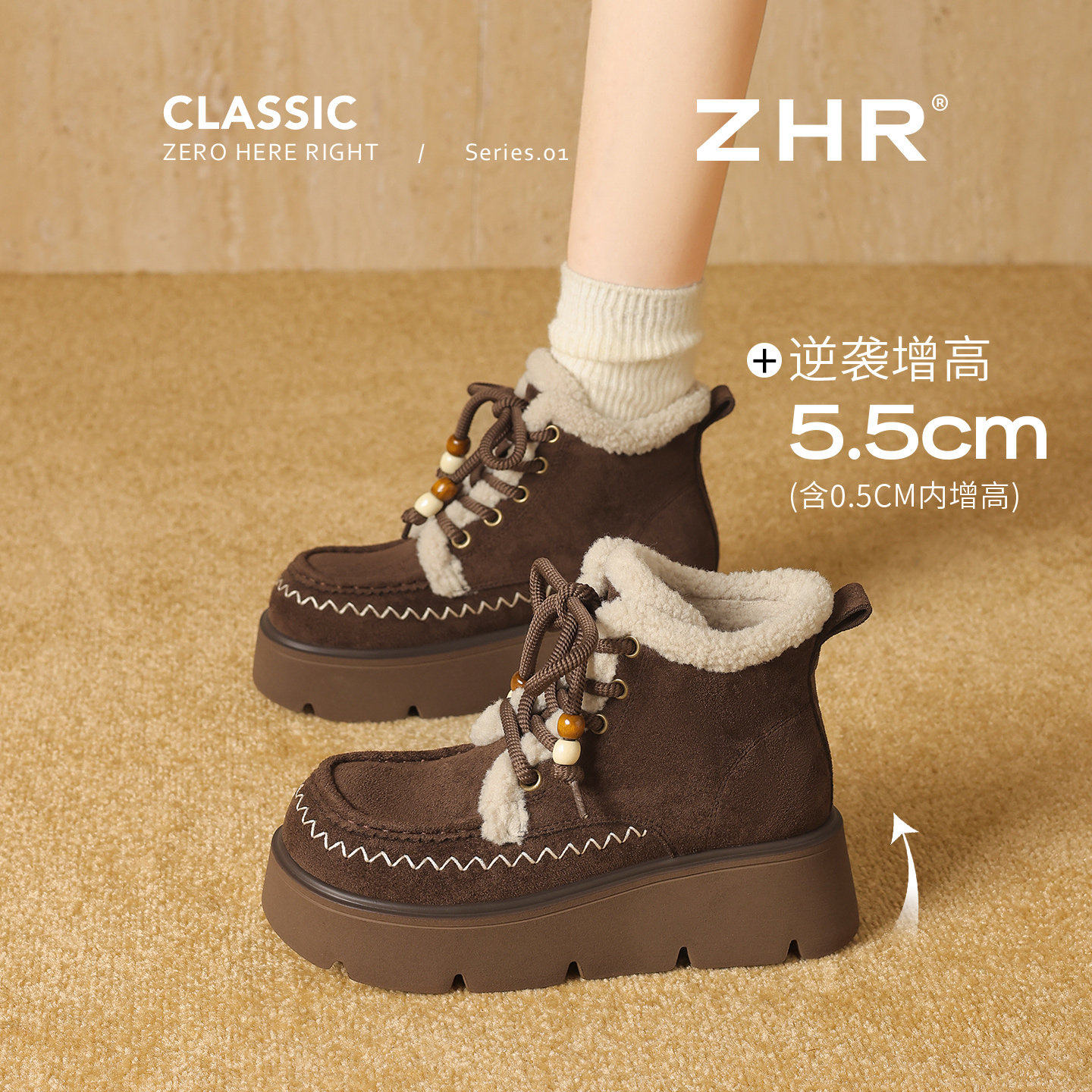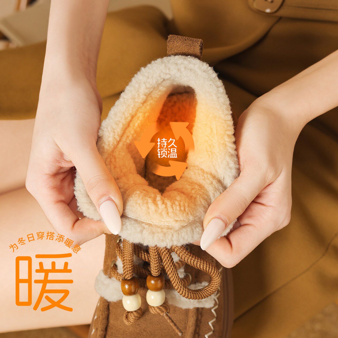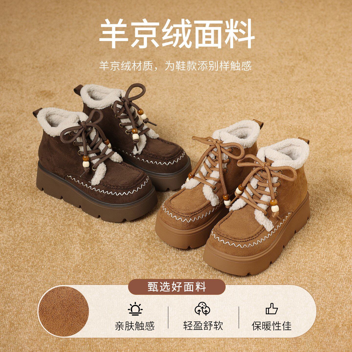 厚底雪地靴女加绒2026冬新款真皮短靴勃肯鞋防水加厚保暖高帮棉鞋