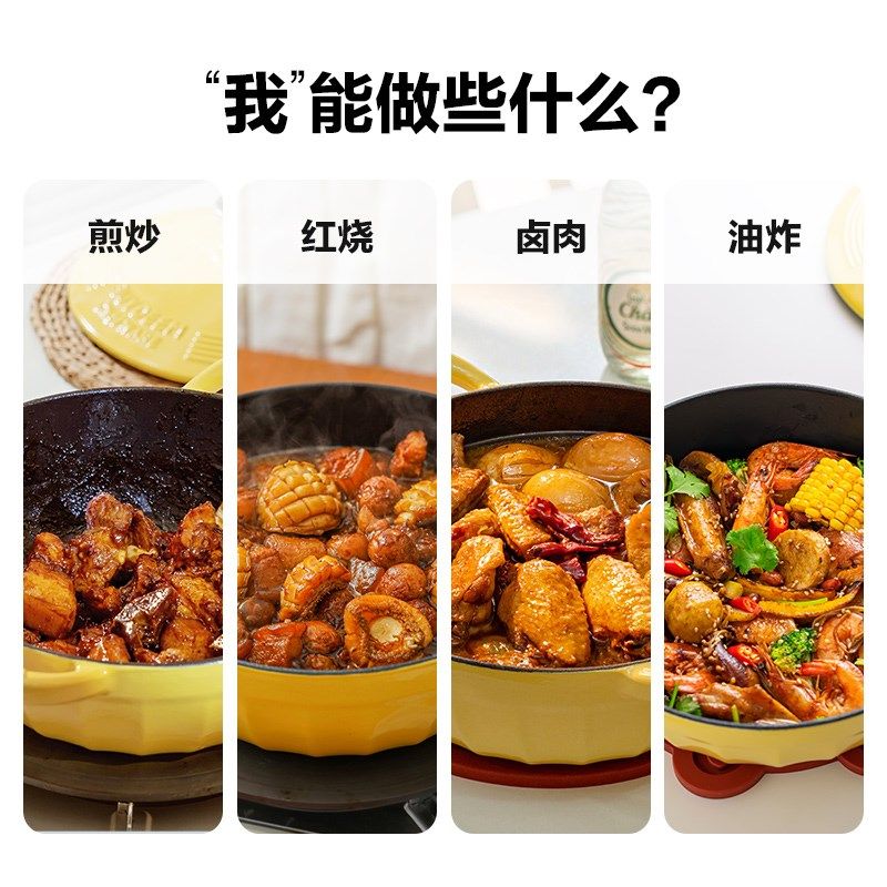 北鼎珐琅锅铸铁家用多功能焖炖煲汤红烧卤煮炒菜深烧锅24cm黑珐琅