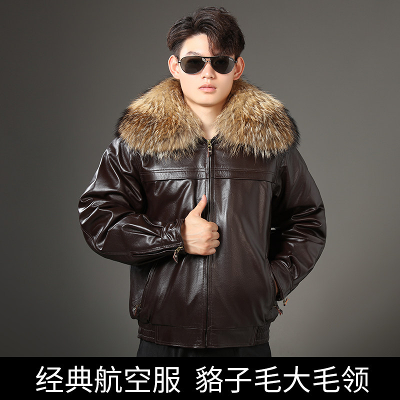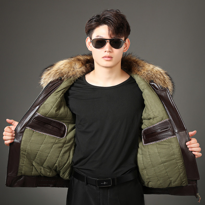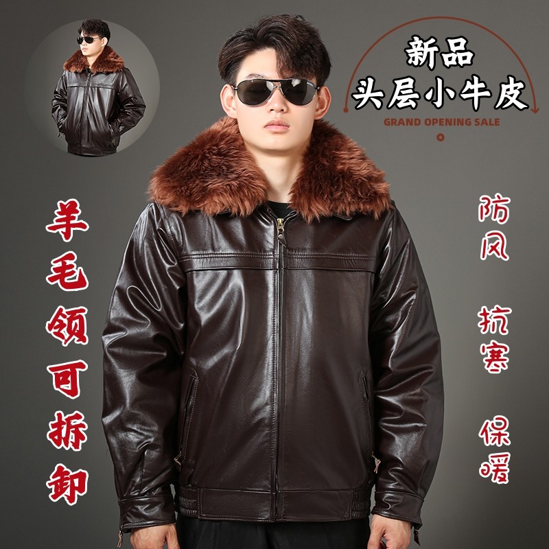 高档头层牛皮真皮皮衣男士空军飞行员皮夹克加棉加厚哈雷机车皮衣