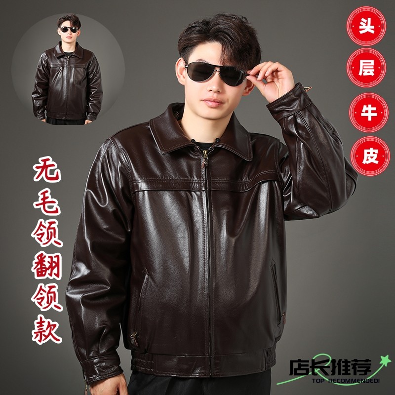 真皮皮衣头层牛皮男士翻领皮夹克