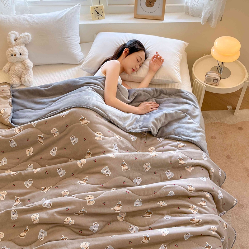 A类汪汪狗冬季加厚全棉双层纱牛奶绒冬被子被芯单双人被褥毛毯被