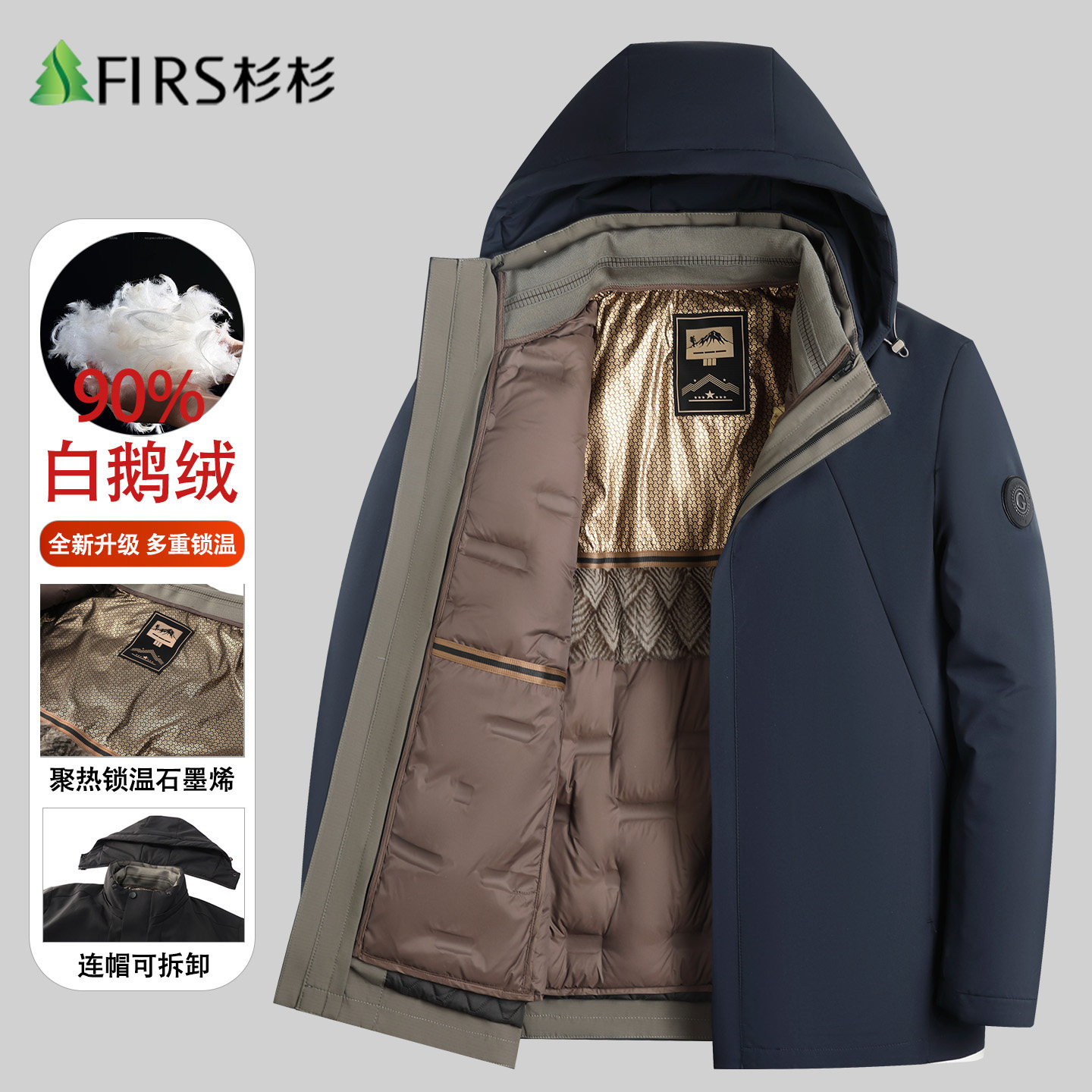 【脱卸内胆】杉杉中老年鹅绒羽绒服男短款冬季加厚爸爸装保暖外套