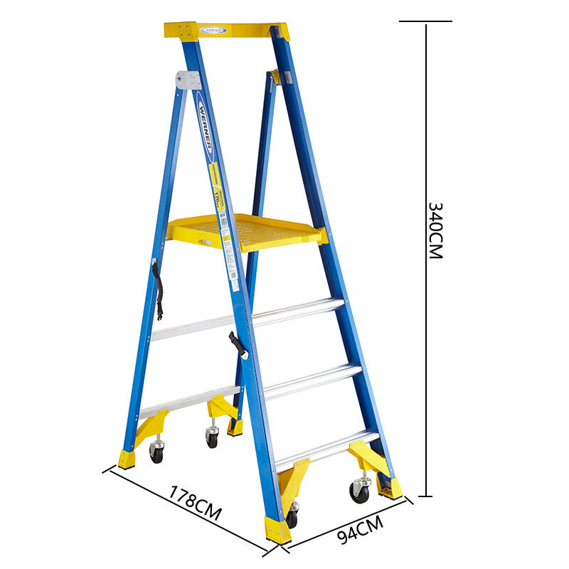 稳耐梯子玻璃钢单侧平台人字梯折叠梯人字梯P170-3CN FG 4CN FG
