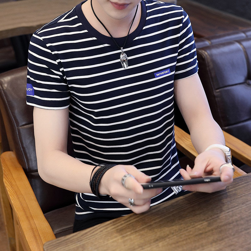 条纹男士短袖t恤海魂衫潮流韩版港风体恤青年学生装夏季超薄休闲t