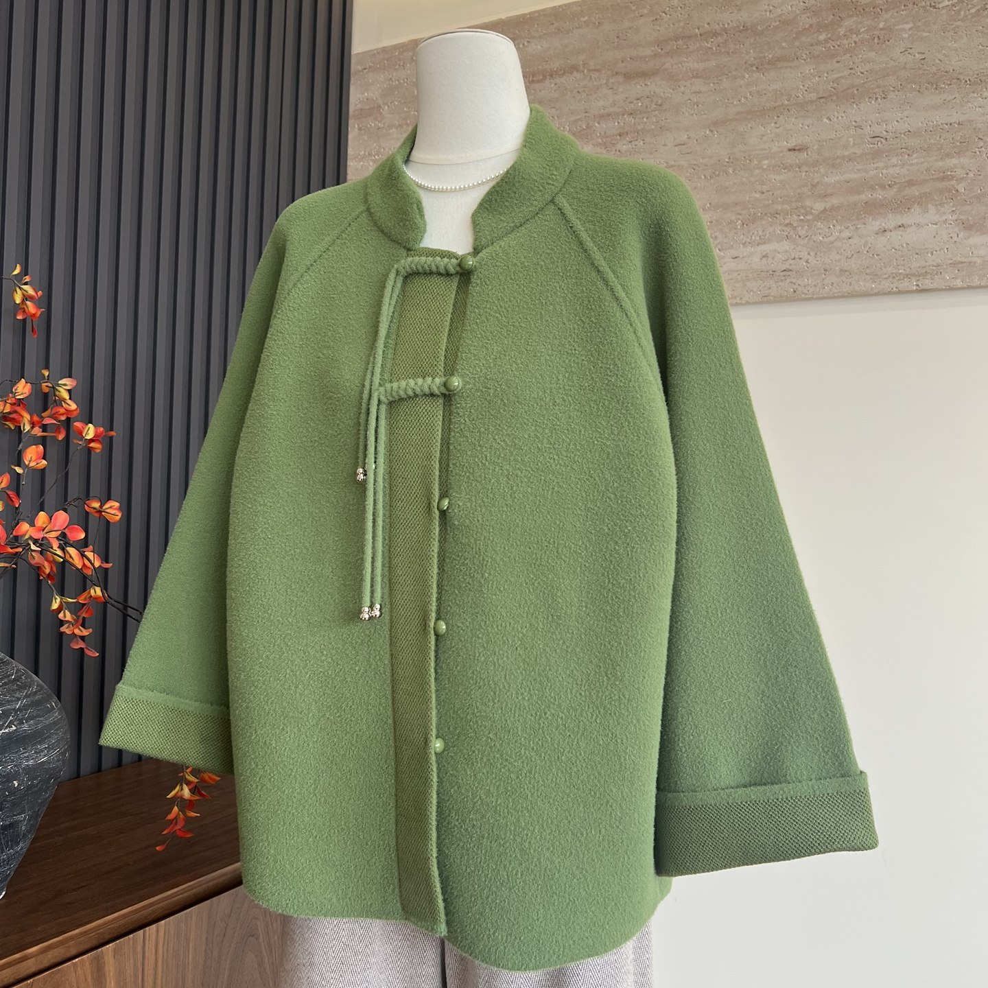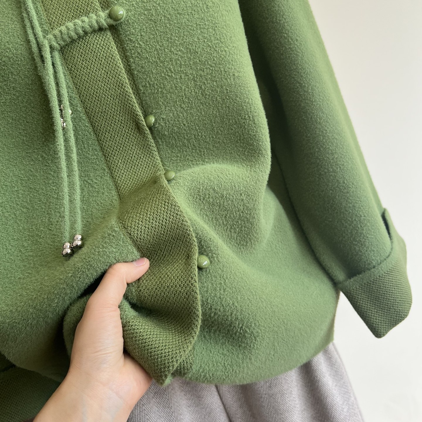 妈妈装新款针织立领九分袖春款纽扣开衫中老年女士新中式百搭外套
