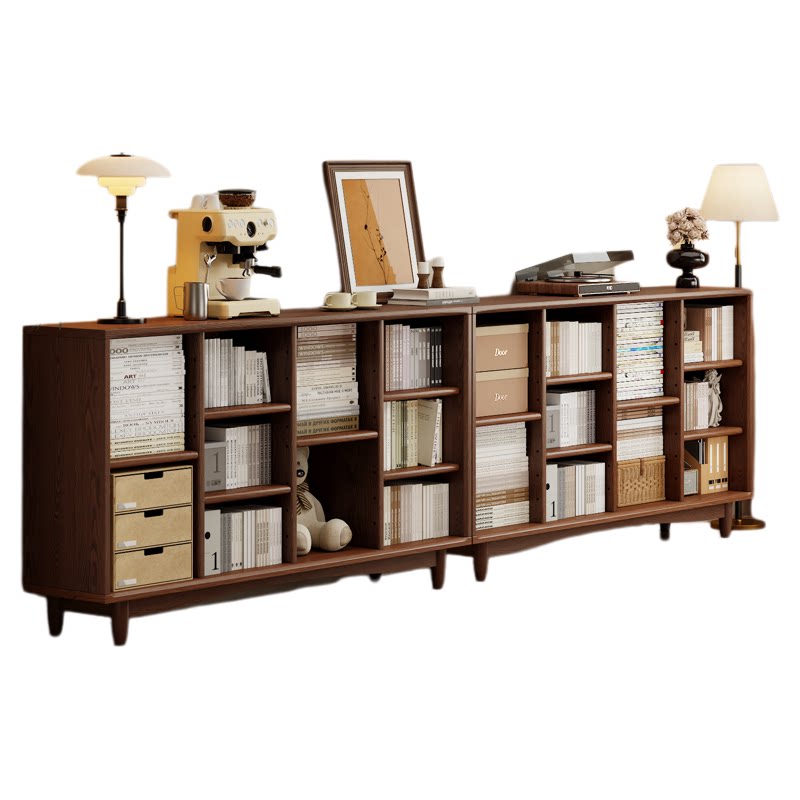 安居客实木书柜储物柜一体卧室落地置物书架胡桃木色简易格子书柜