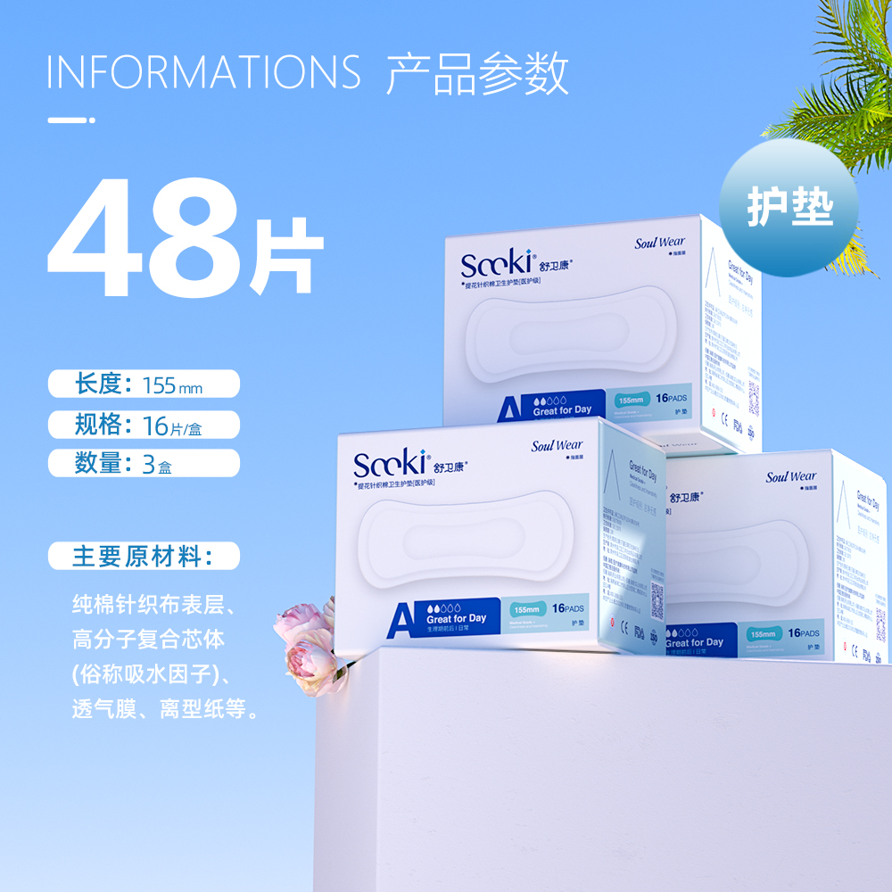 药房舒卫康医护级护垫女防过敏纯棉纱布防漏尿专用155mm3盒共48片