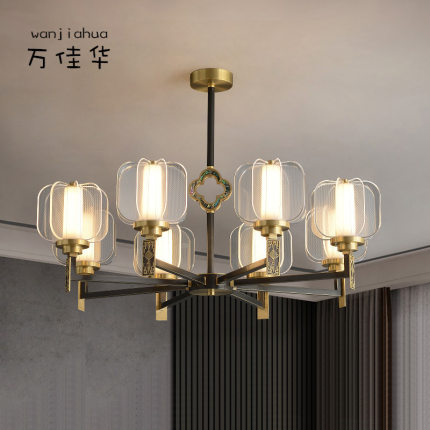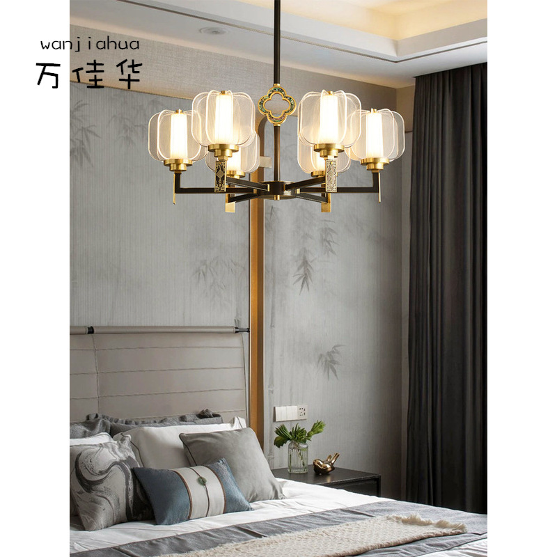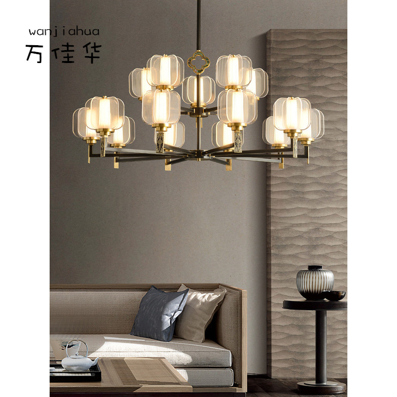 新中式客厅吊灯禅意中国风大气贝壳工艺2022新款全铜中国风灯具