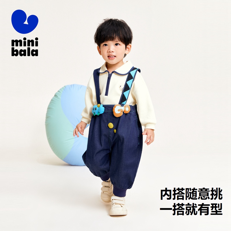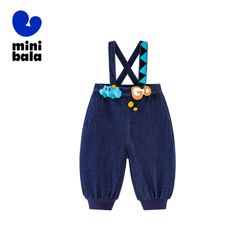 【软牛仔】迷你巴拉巴拉男女童婴儿牛仔裤春宝宝儿童背带裤灯笼裤