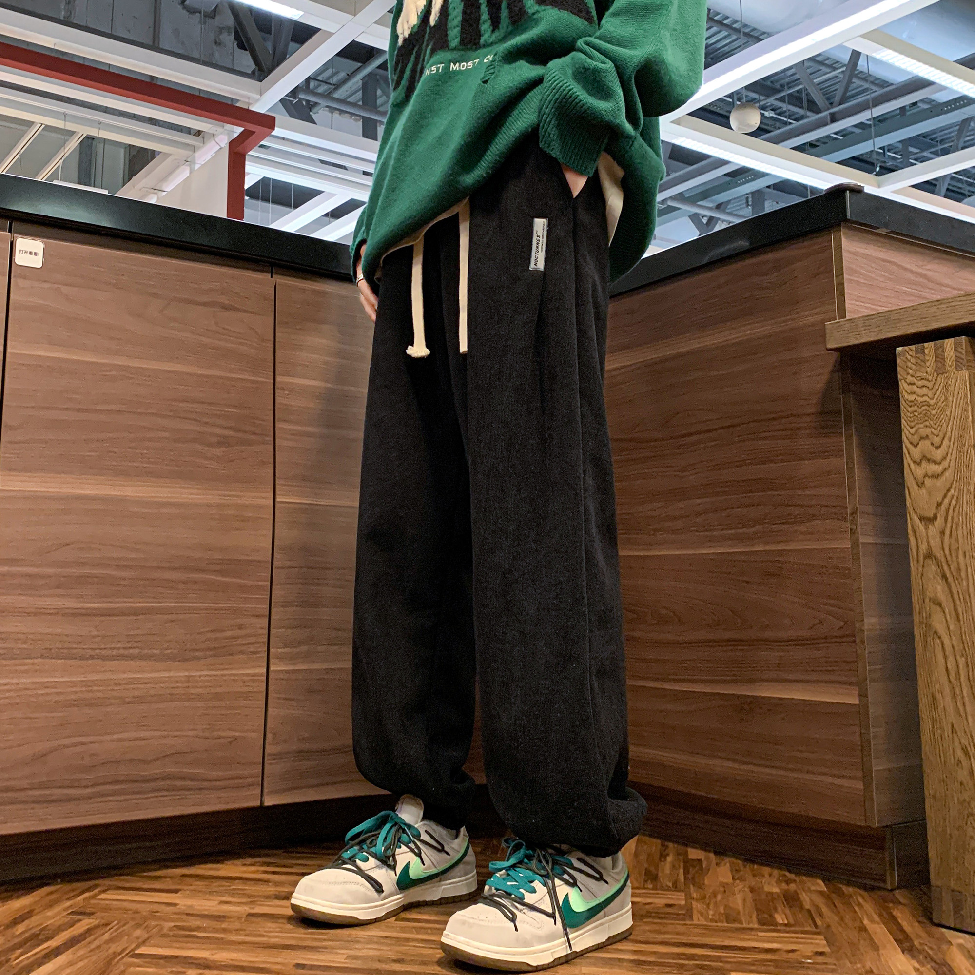 雪尼尔羊羔绒裤子男冬季大码宽松加绒阔腿灯芯绒直筒休闲男生裤子