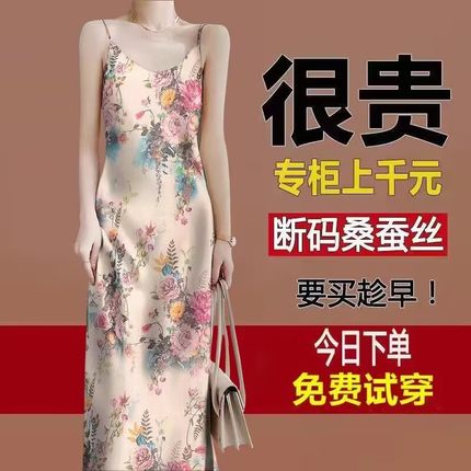 真丝吊带连衣裙女夏中长款香云纱