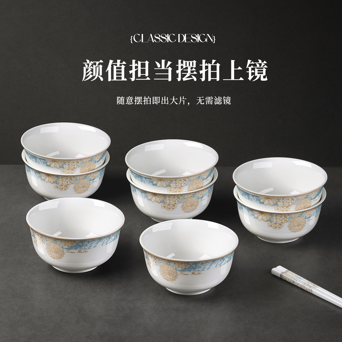 陶瓷碗家用2025新款高颜值饭碗汤碗加厚耐釉下彩高温家庭装餐具