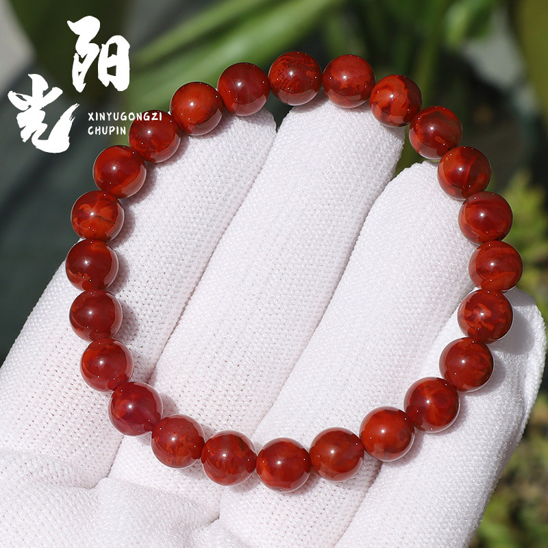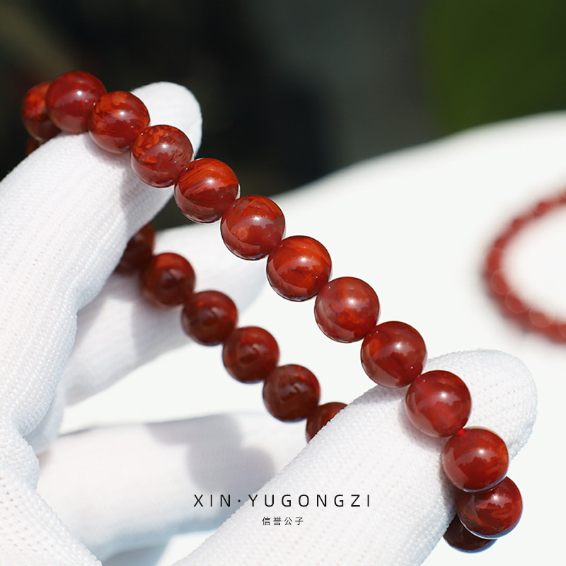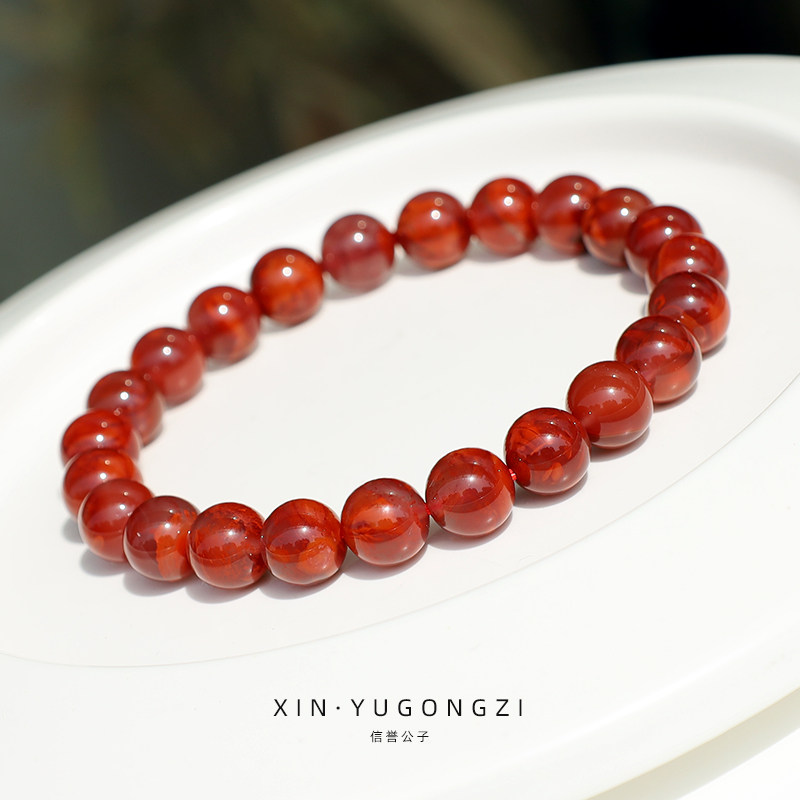 原矿川料凉山九口火焰纹南红玛瑙圆珠手串手链半成品配饰搭配