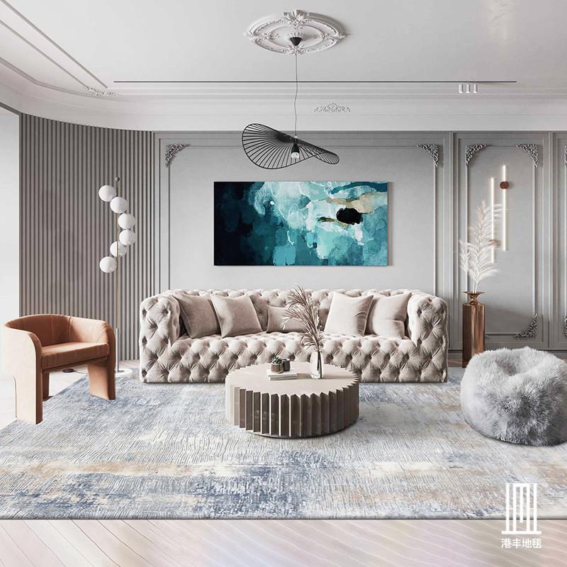 土耳其进口现代轻奢客厅地毯美式极简素色沙发茶几毯卧室床边高级