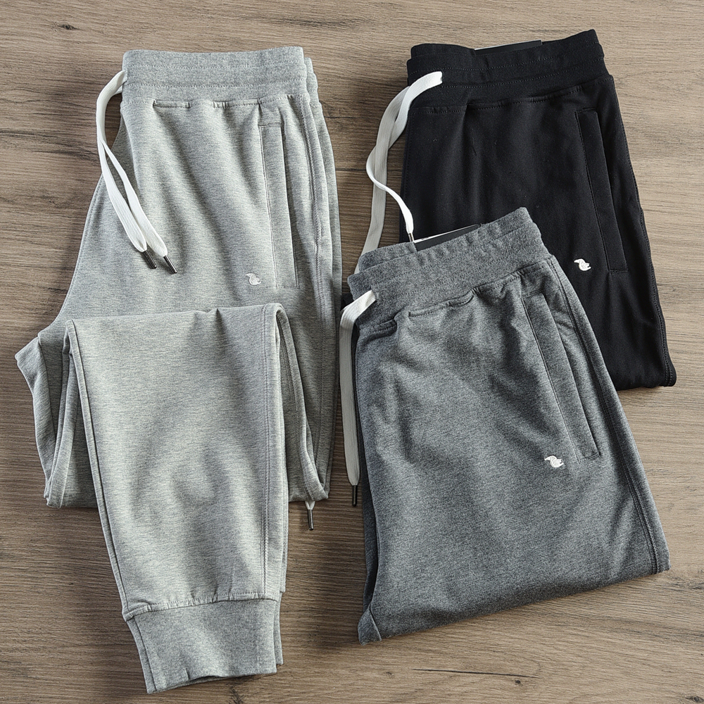 春夏薄款收口休闲纯棉卫裤男舒适透气宽松束脚运动裤弹力九分裤男