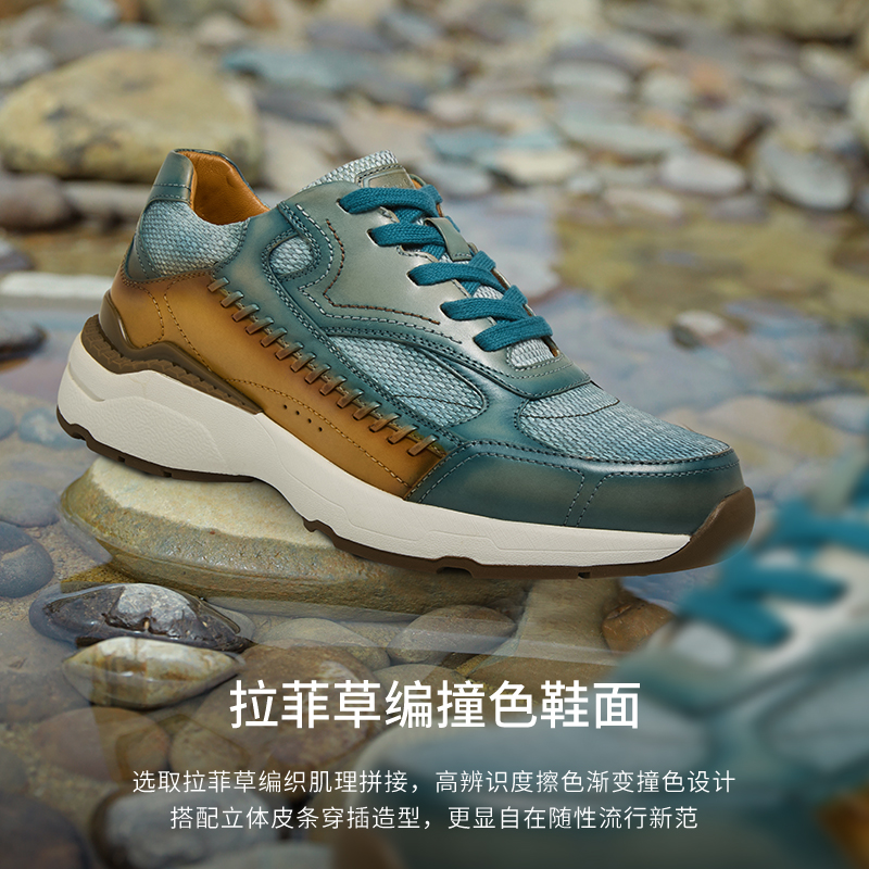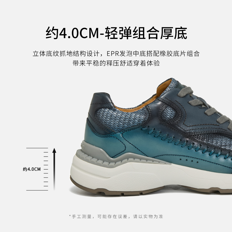 皮尔卡丹男鞋真皮厚底增高老爹鞋百搭跑步运动鞋时尚透气休闲鞋男