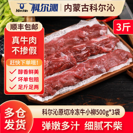 科尔沁原切冷冻牛小柳500g*3袋烧烤炒菜牛柳内蒙国产谷饲生鲜牛肉