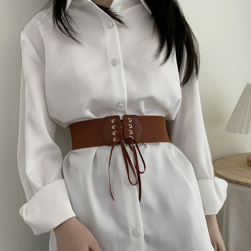 黑色腰带女宽收腰装饰百搭配连衣裙子衬衫松紧弹力系带女士腰封