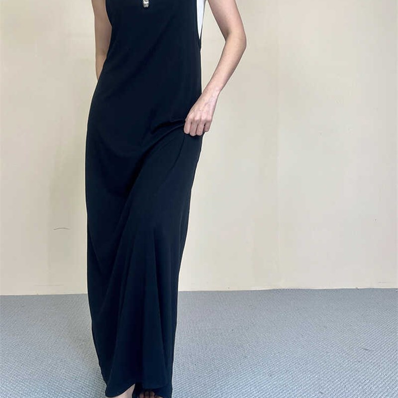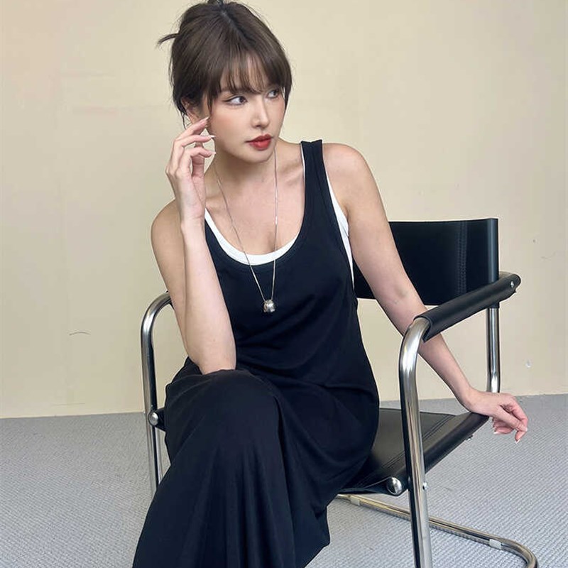 假两件圆领背心长裙女休闲百搭宽松夏季拼色连衣裙女2024新