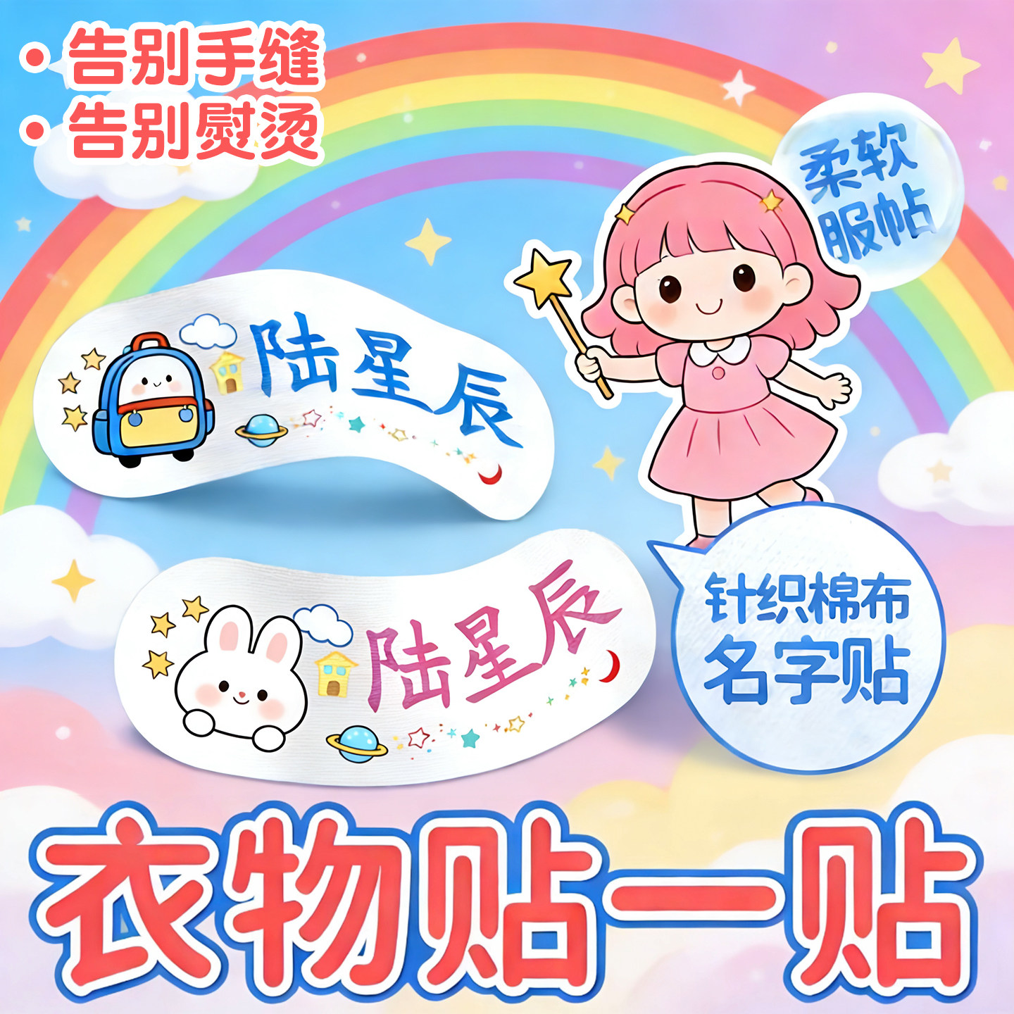 幼儿园姓名贴自粘贴棉布衣服名字贴免缝防水防撕小学生棉被褥大号