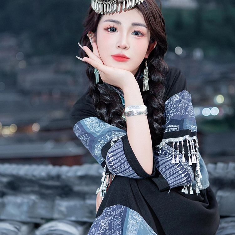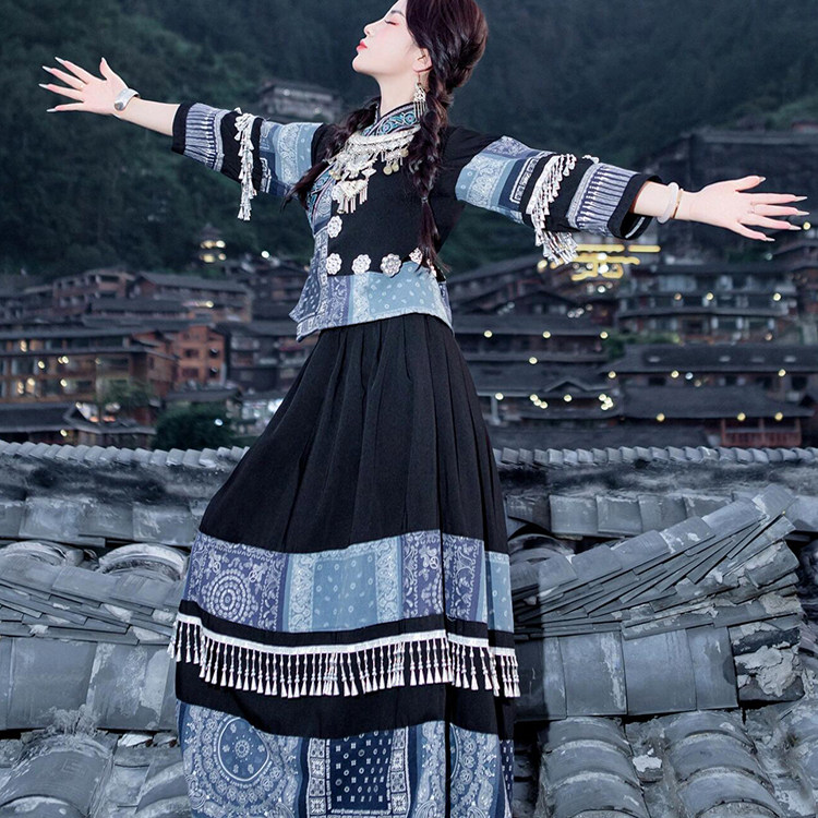 苗族蜡染服装女土家族民族风演出服湘西贵州云南旅游穿搭网红写真