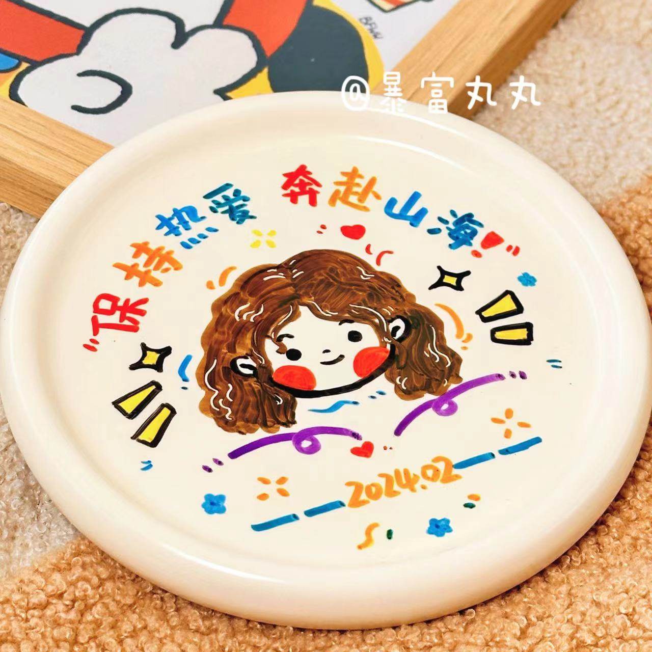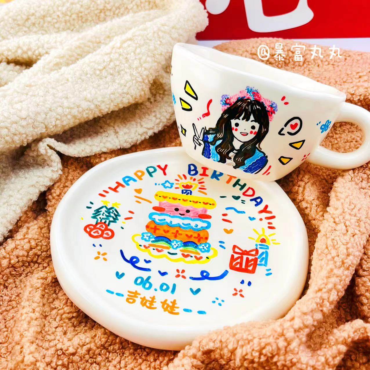 手绘定制杯碟!人像绘制生日礼物套装礼品定制水杯陶瓷马克杯子盘
