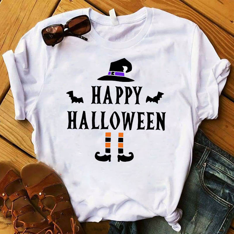 Halloween T shirt万圣节女士短袖莫代尔t恤宽松百搭上衣晚会衣服